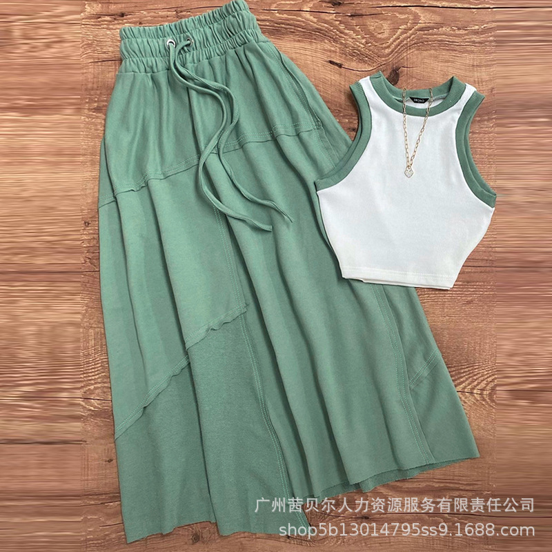 ODL2023 시리즈 여성복 유럽 및 미국 스타일 배색 조끼 상의+A라인 스커트 세트 2피스