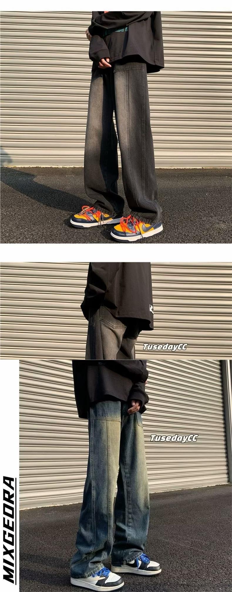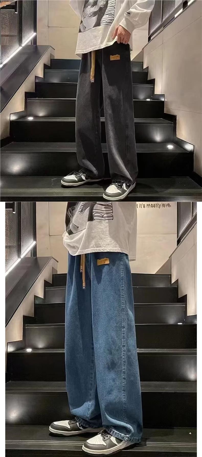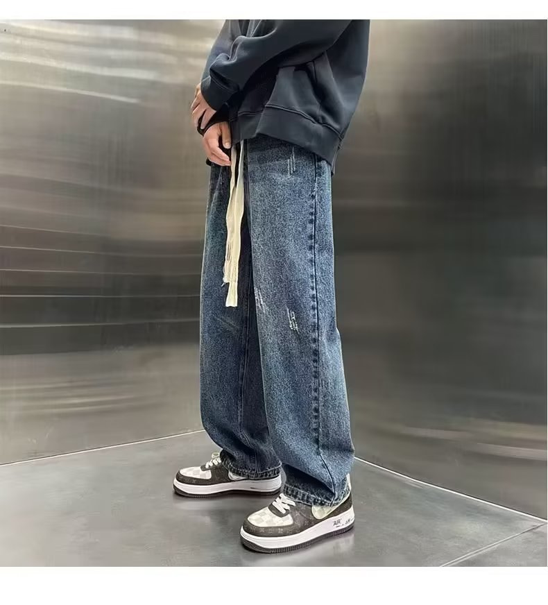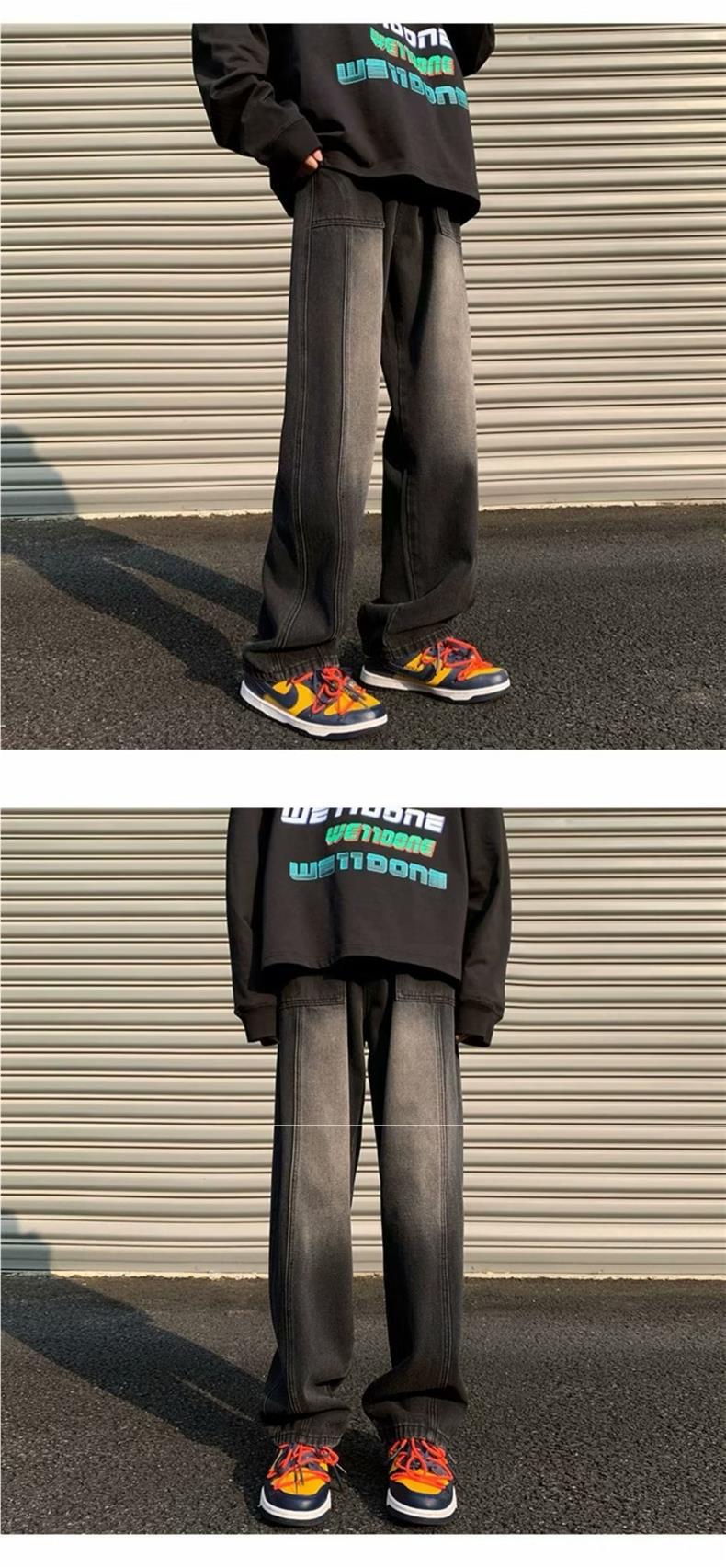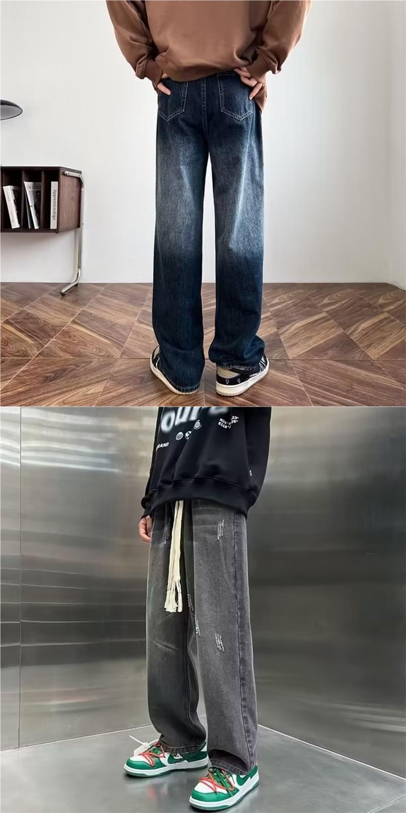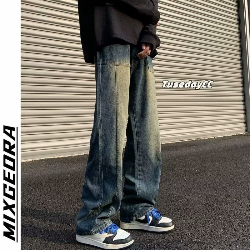 봄과 가을 빈티지 청바지 남성용 스트레이트 루즈 트렌디 브랜드 와이드 레그 아메리칸 스타일 하이 스트리트 캐주얼 롱 팬츠 재고스토어 가기