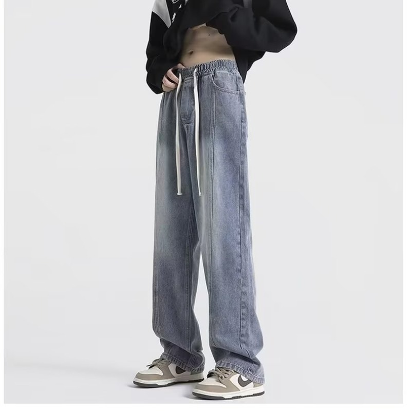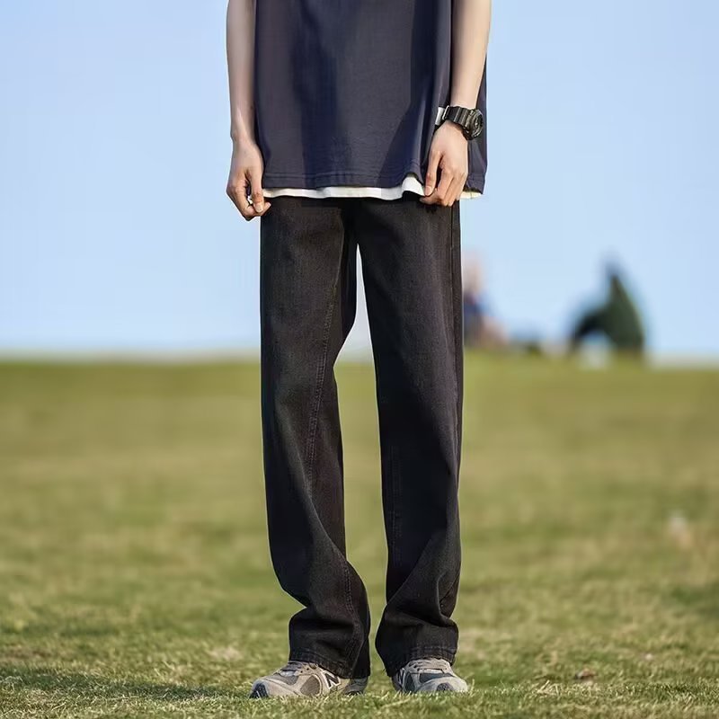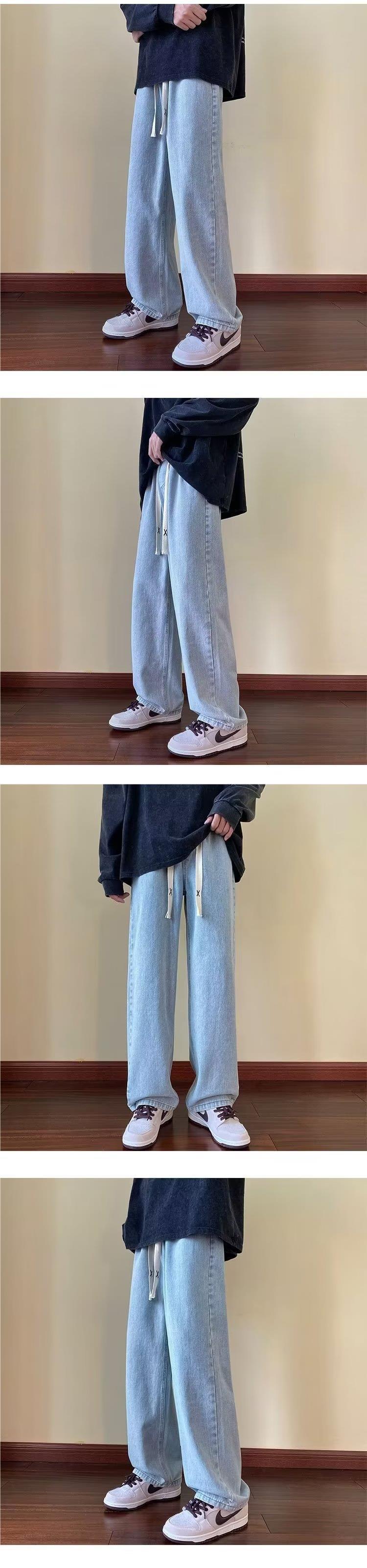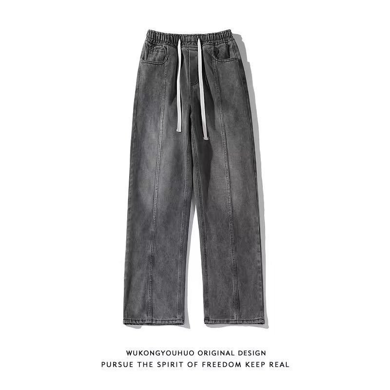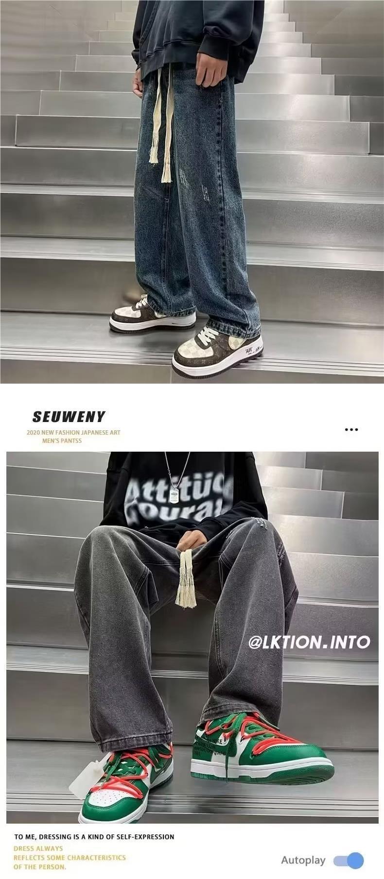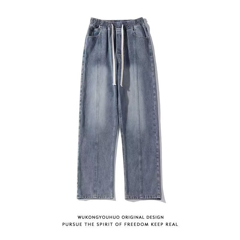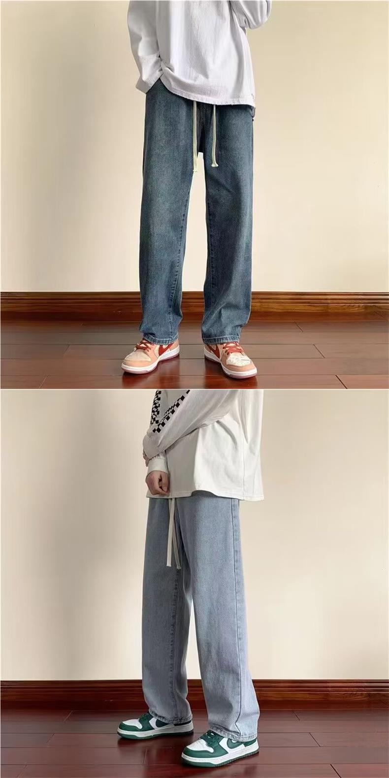 봄과 가을 빈티지 청바지 남성용 스트레이트 루즈 트렌디 브랜드 와이드 레그 아메리칸 스타일 하이 스트리트 캐주얼 롱 팬츠 재고스토어 가기