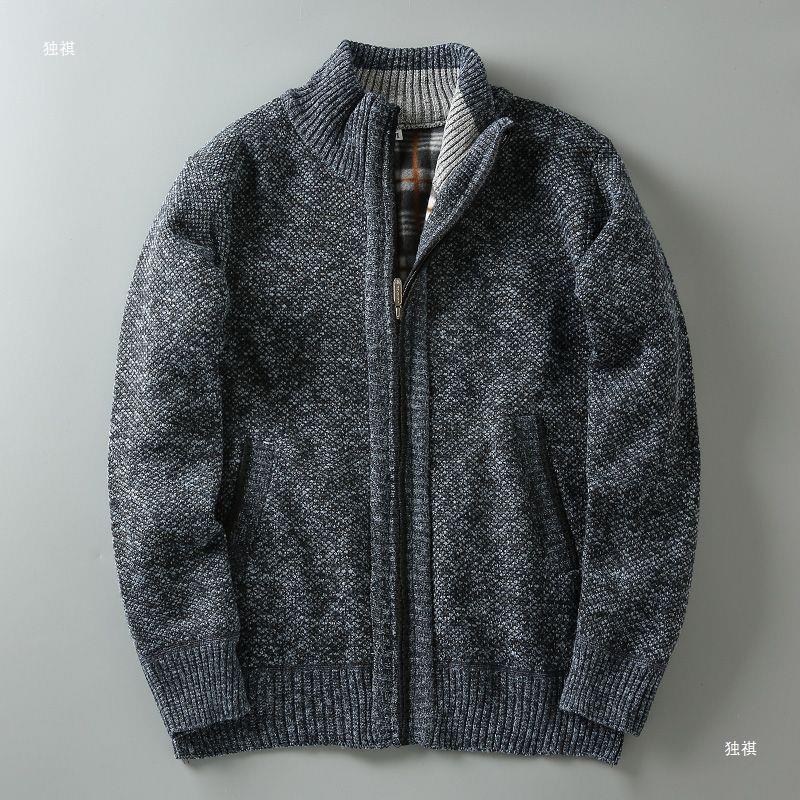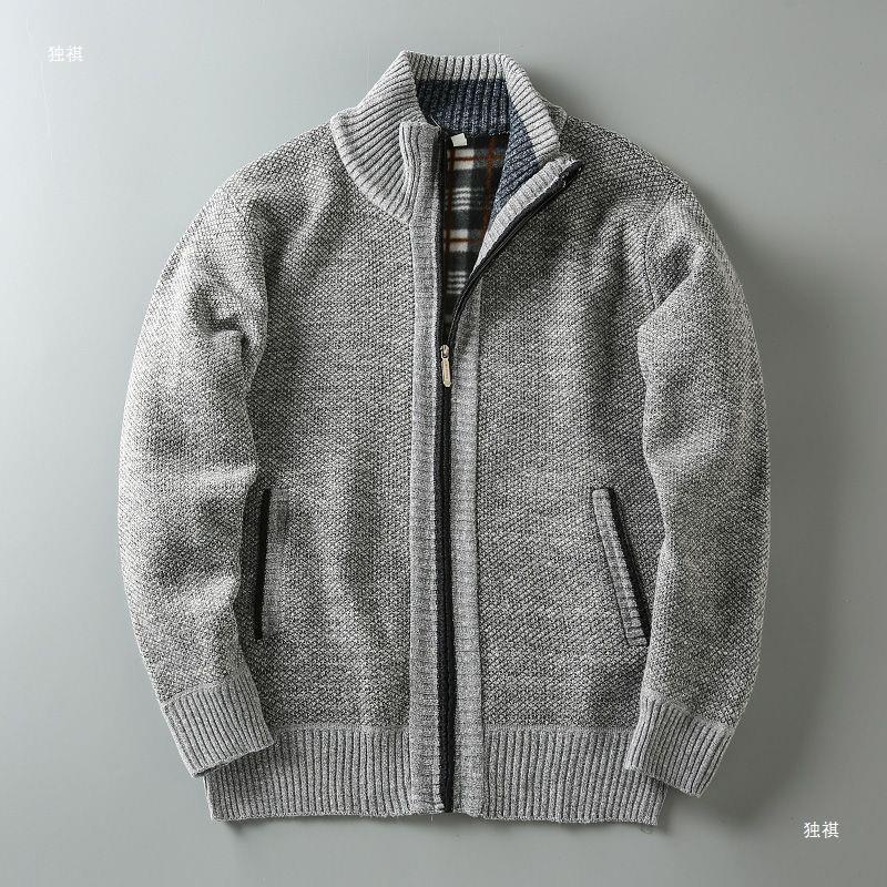 2023 가을과 겨울 새로운 남성 스탠드 칼라 니트 카디건 기모 두꺼운 따뜻한 캐주얼 조커 스웨터 재킷 코트스토어 가기