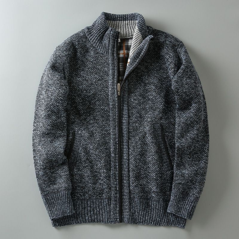 2023 가을과 겨울 새로운 남성 스탠드 칼라 니트 카디건 기모 두꺼운 따뜻한 캐주얼 조커 스웨터 재킷 코트