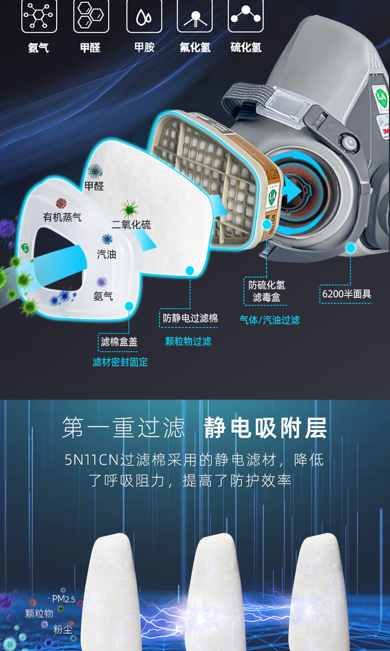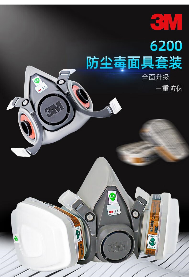 3M 가스 마스크 6200 반면 이중 필터 상자 페인트 장식 살충제 화학 가스 먼지 독성 보호 마스크