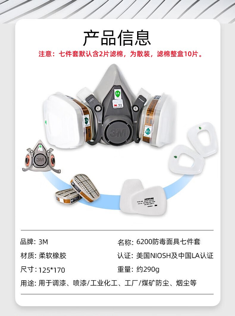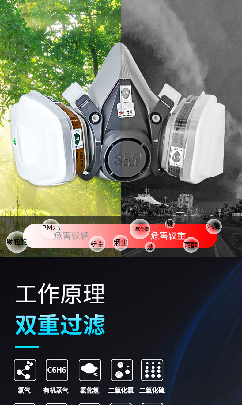 3M 가스 마스크 6200 반면 이중 필터 상자 페인트 장식 살충제 화학 가스 먼지 독성 보호 마스크스토어 가기