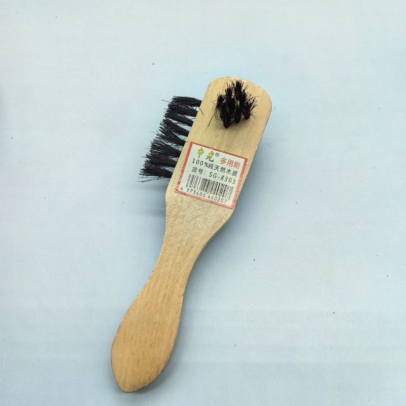 나무 손잡이 구두 광택제 브러시 3 면 나무 신발 신발 브러시 3 사용 나무 손잡이 신발 광택 멀티 사용 가죽 신발 일상 용품