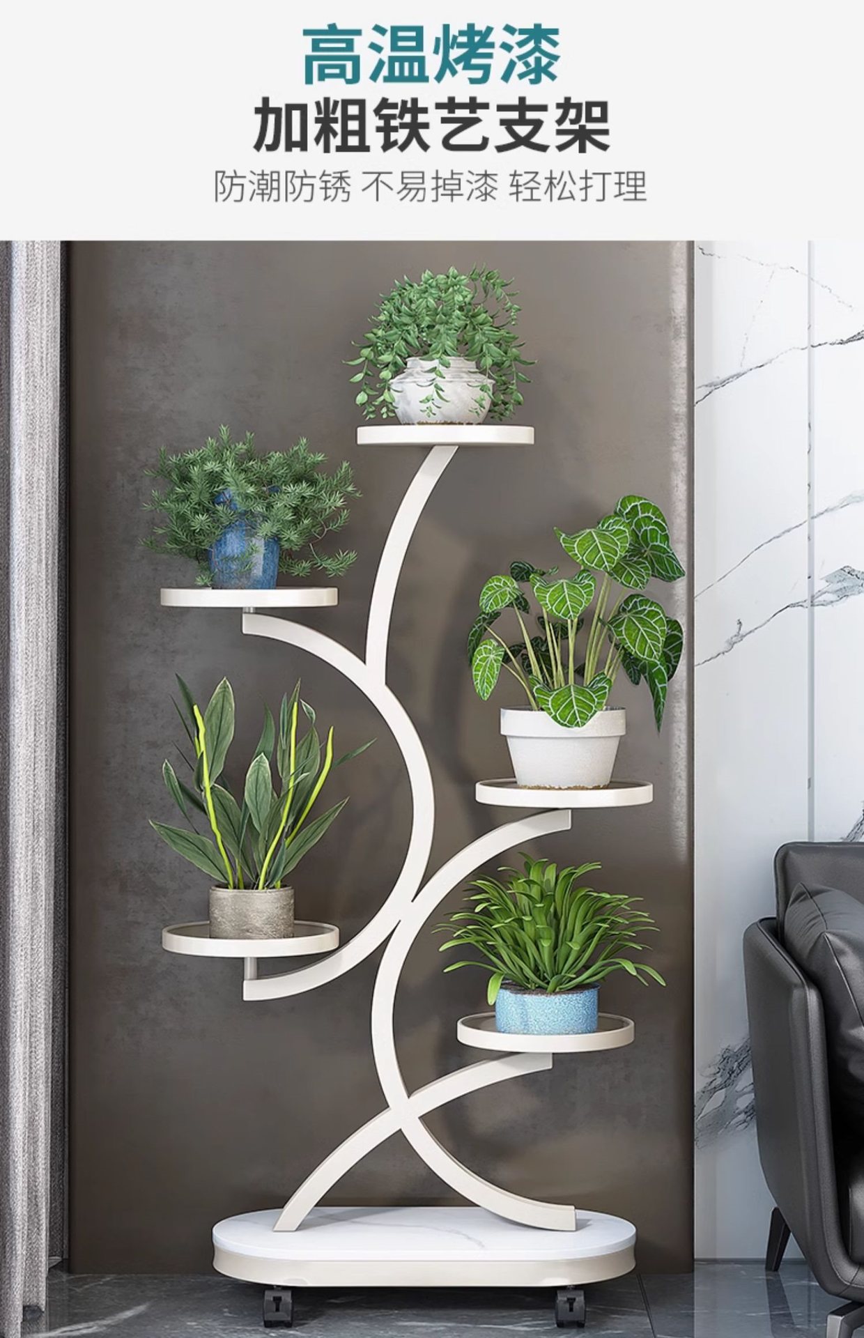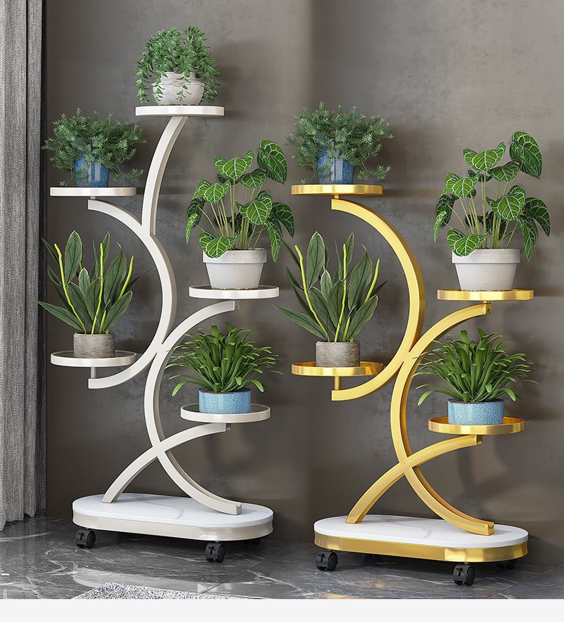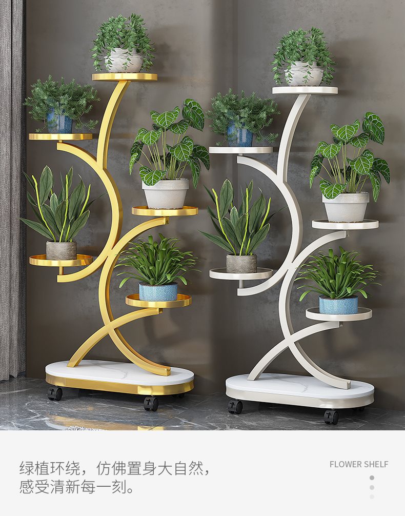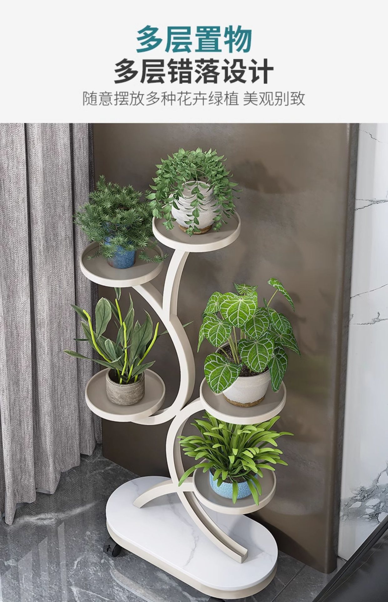 라이트 럭셔리 플라워 선반 거실 바닥 스탠딩 발코니 스토리지 랙 다색 플라워 랙 유니버설 휠 단철 플라워 팟 브래킷 다층스토어 가기
