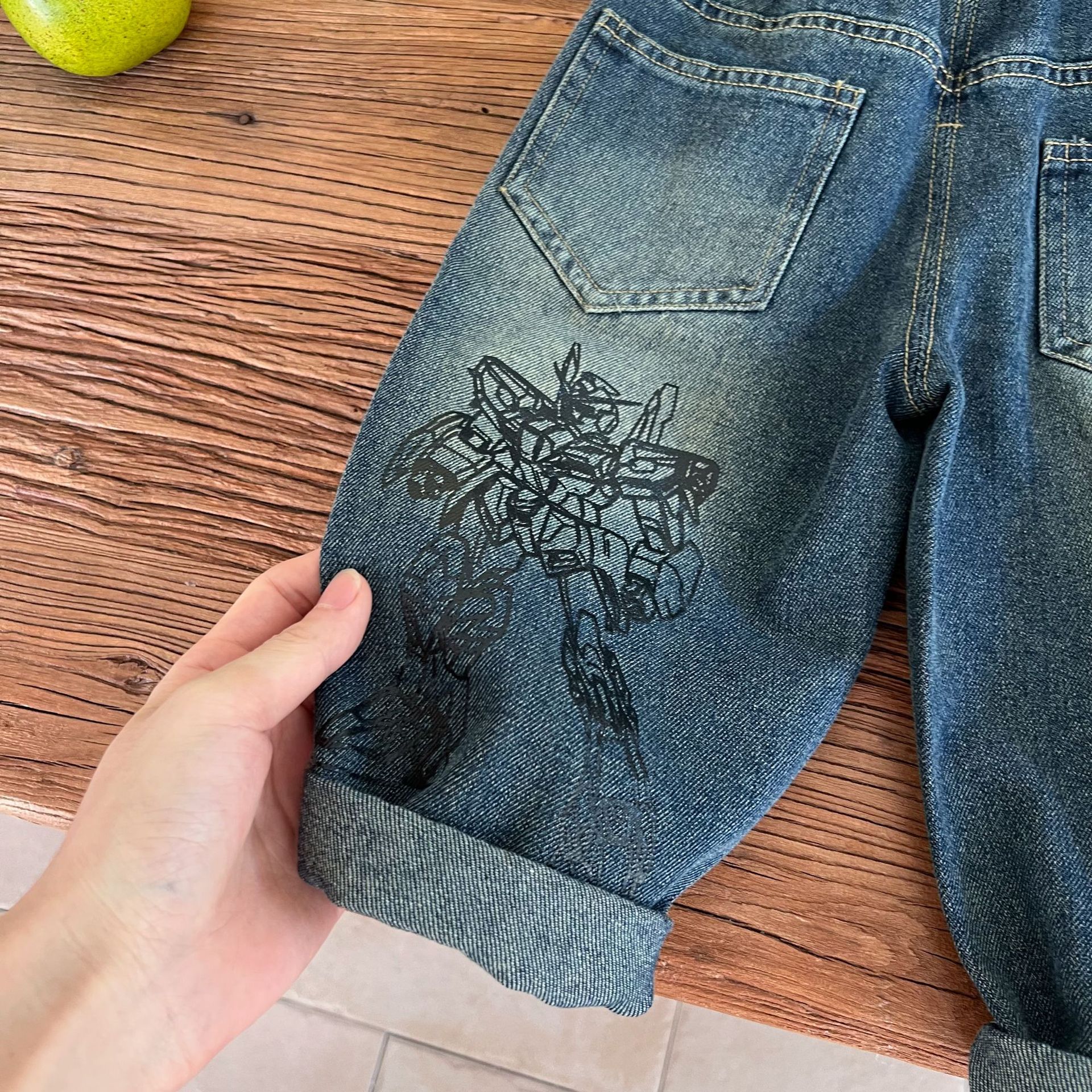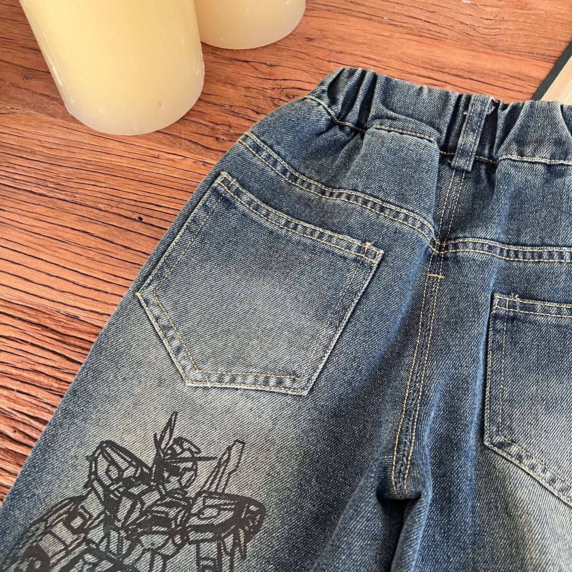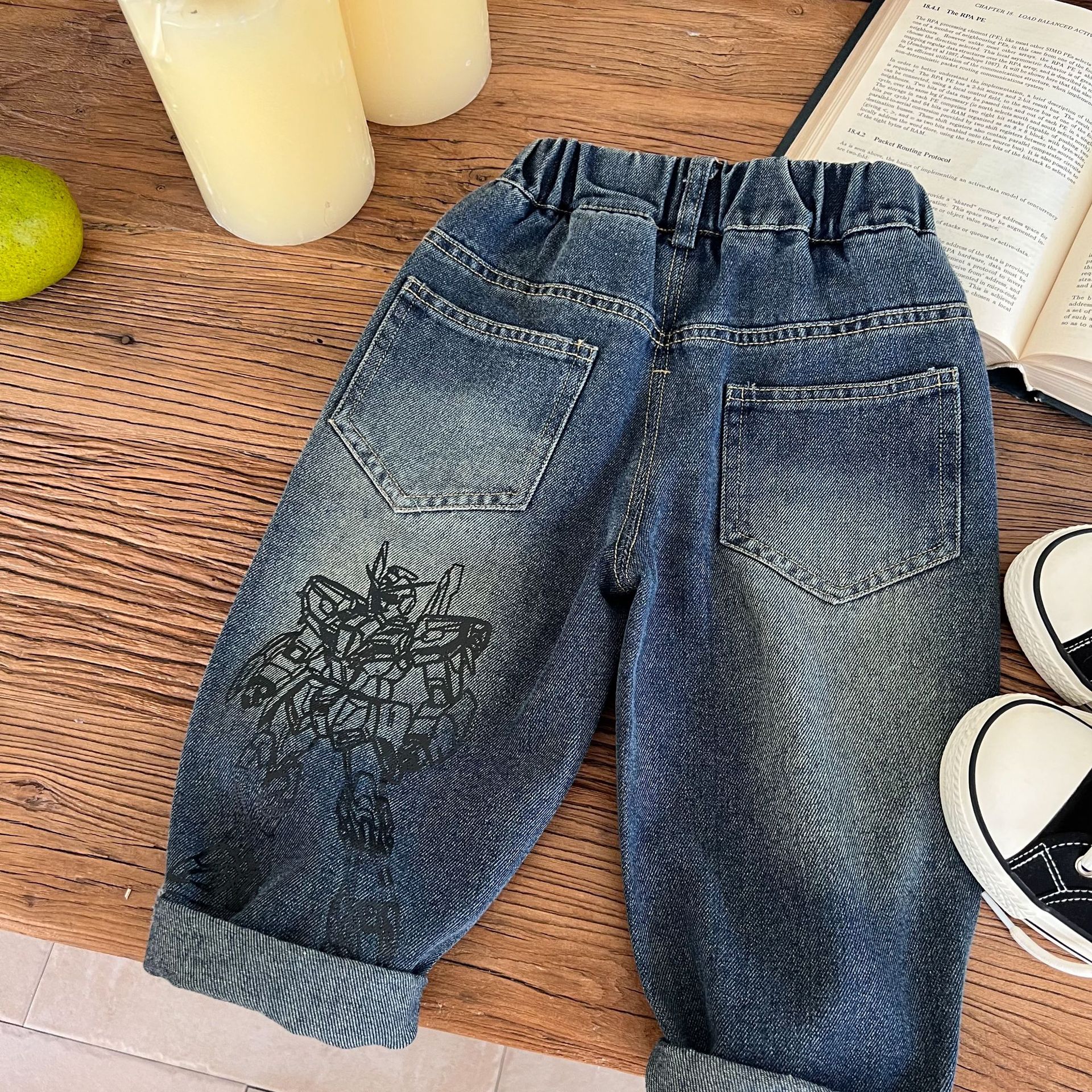 아동 청바지 2025 봄, 가을 새로운 아동 바지 소년 데님 바지 로봇 유행 아동 바지