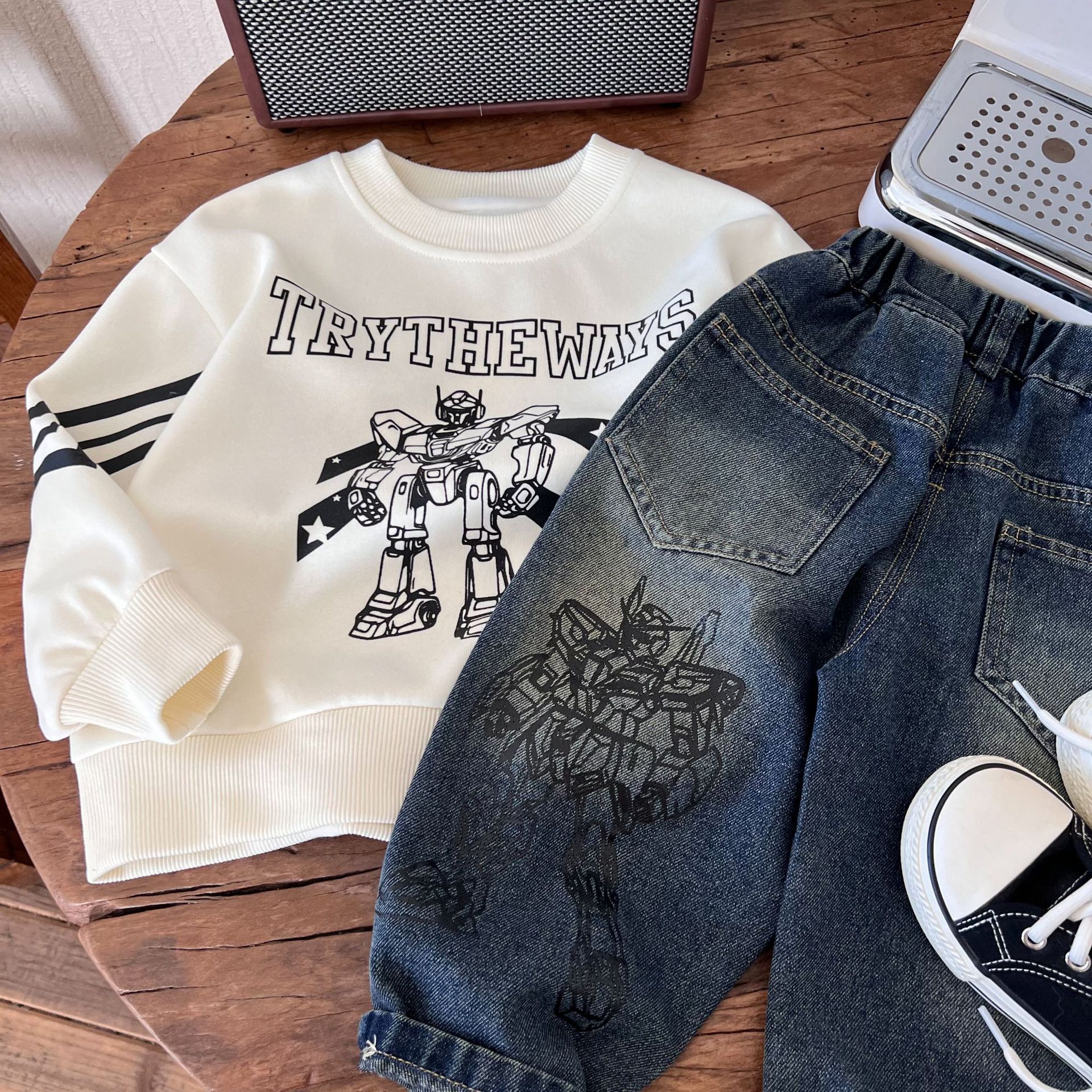 아동 청바지 2025 봄, 가을 새로운 아동 바지 소년 데님 바지 로봇 유행 아동 바지스토어 가기