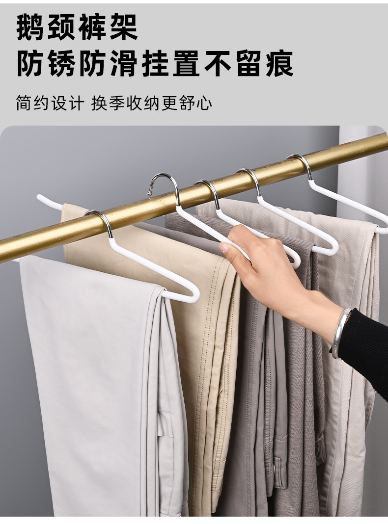 구스형 바지걸이, 무봉제, 두꺼운 5.0, 짧은 목, 공간 절약형 수납 및 정리, 플라스틱 침지 바지 걸이스토어 가기