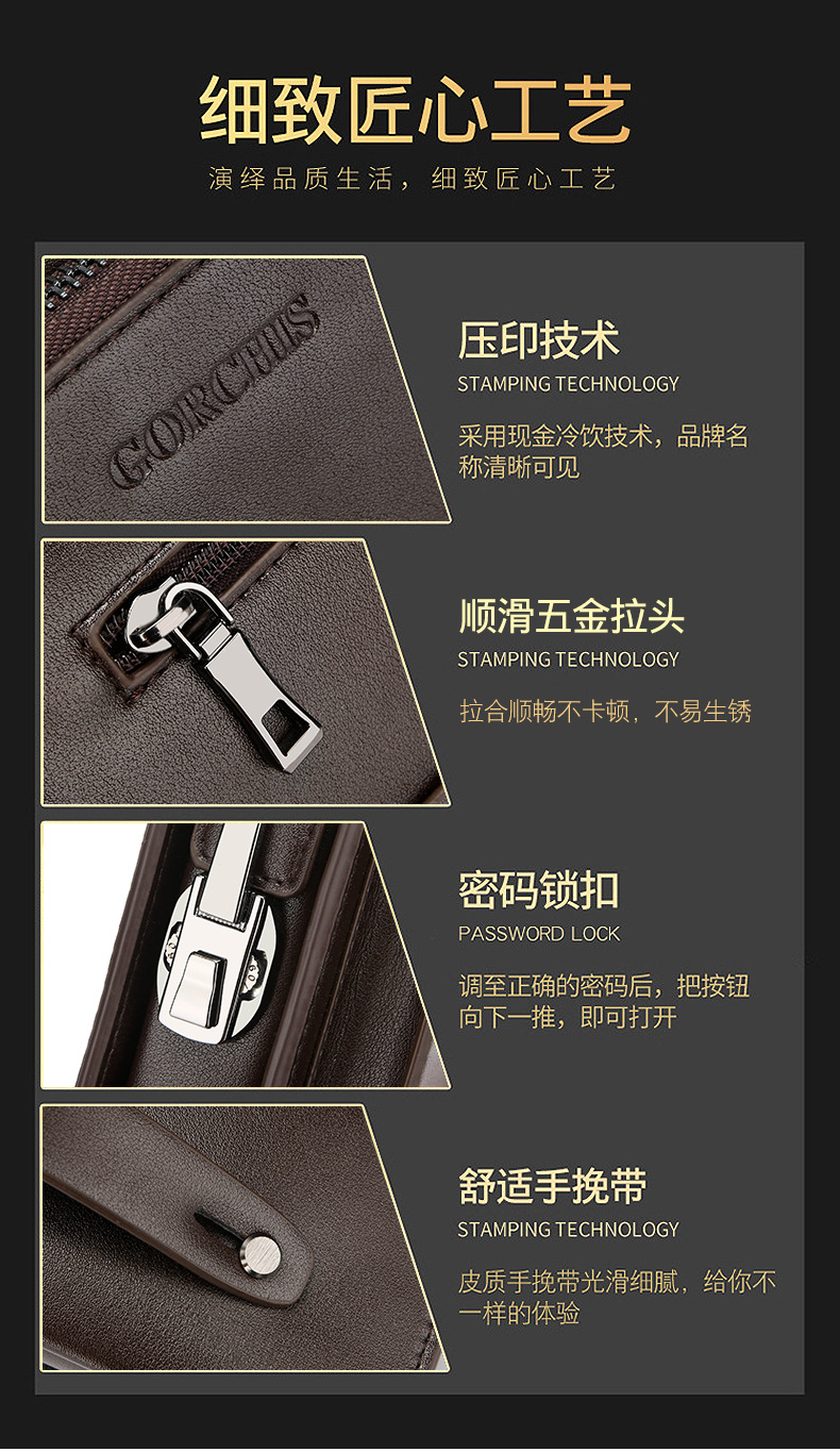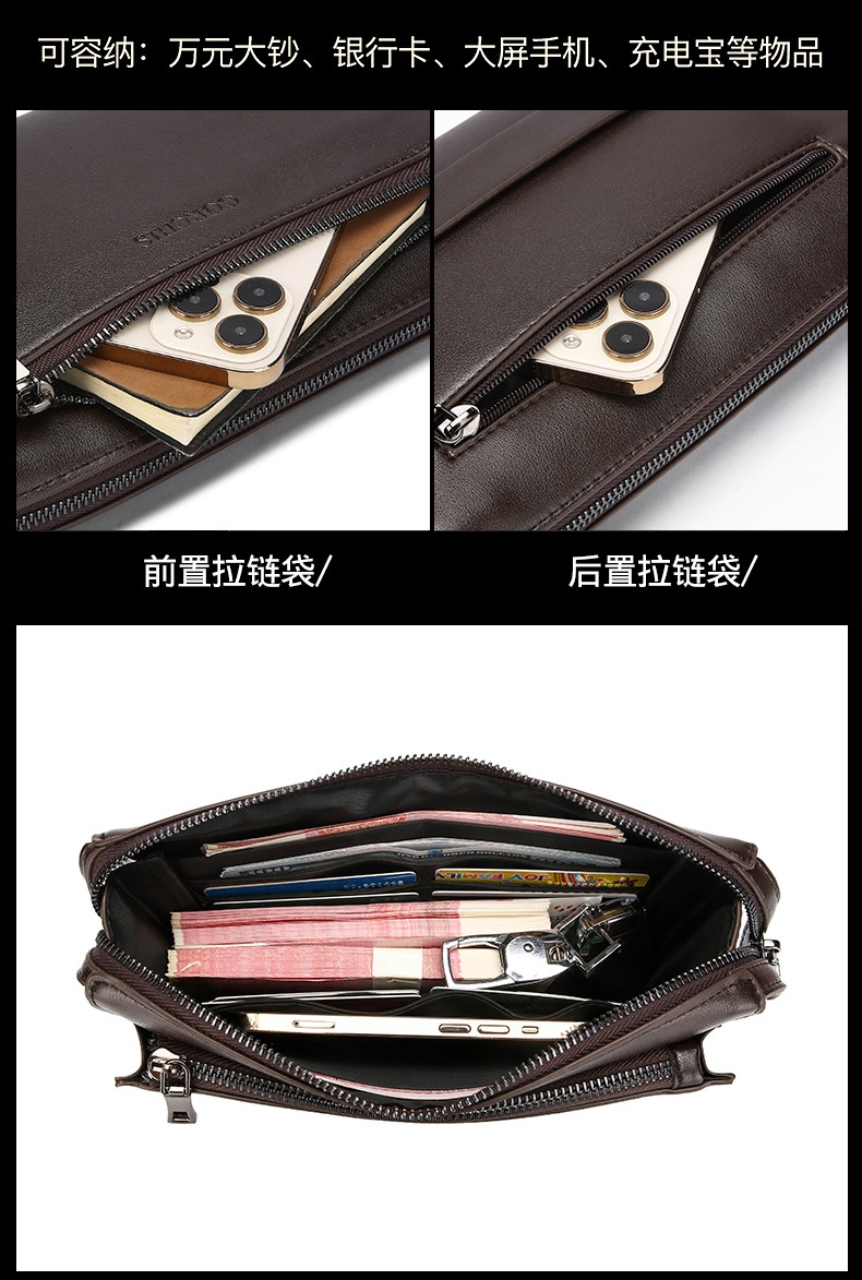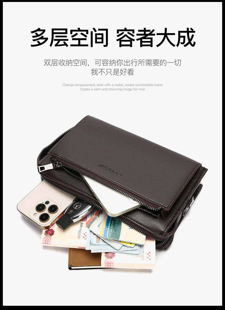 새로운 남성 클러치 백 조합 잠금 도난 방지 대용량 멀티 포켓 핸드백 비즈니스 핸드백 가죽 남성용 트렌디 백스토어 가기