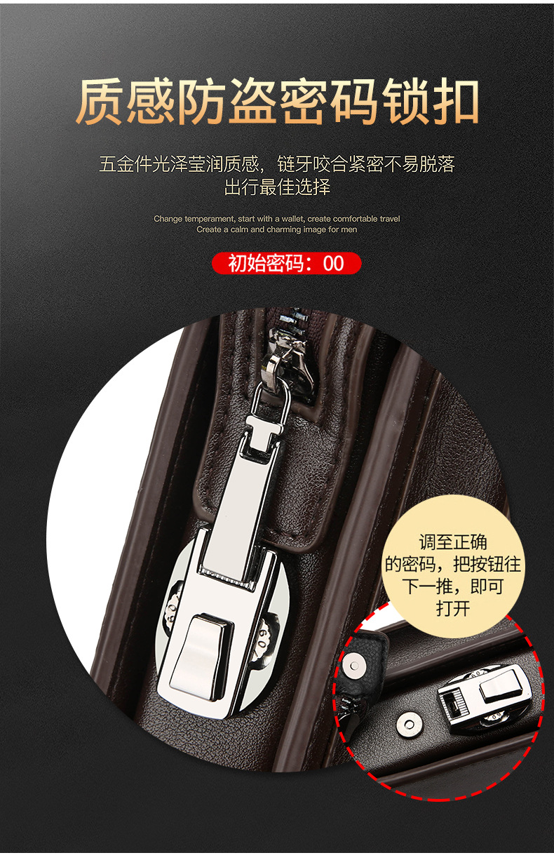 새로운 남성 클러치 백 조합 잠금 도난 방지 대용량 멀티 포켓 핸드백 비즈니스 핸드백 가죽 남성용 트렌디 백