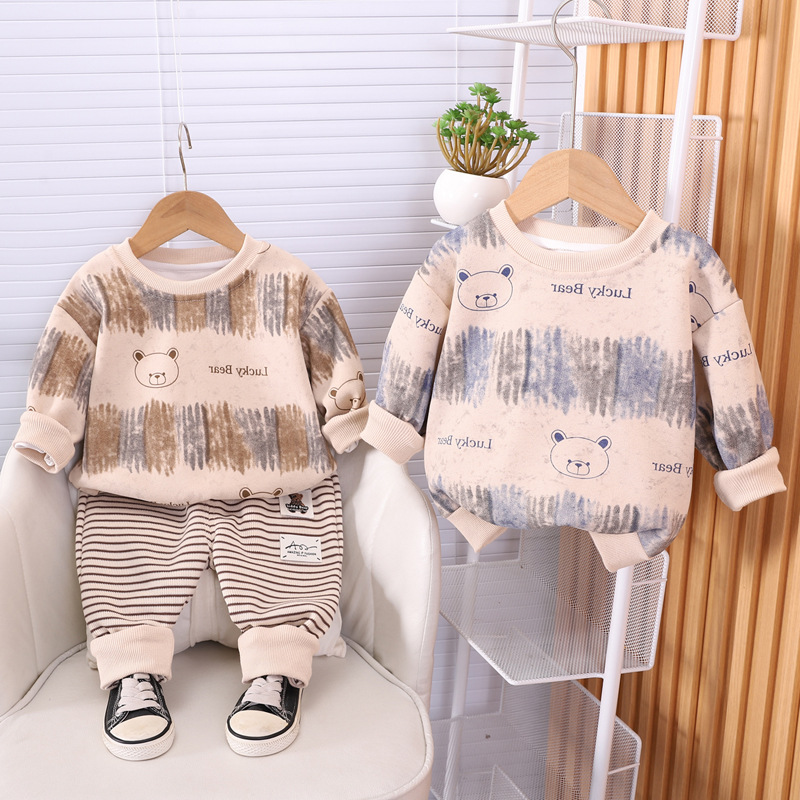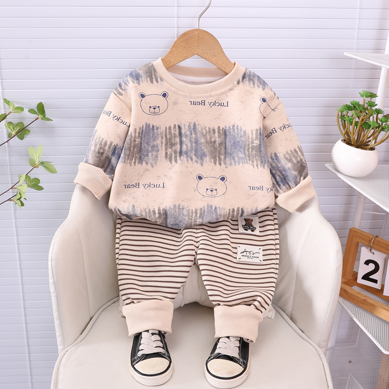 소년 가을 패션 세트 새로운 아기 가을 줄무늬 곰 머리 아기 긴 소매 옷 두 조각 세트스토어 가기