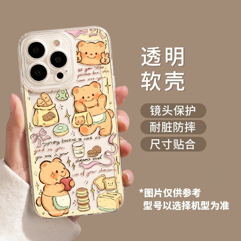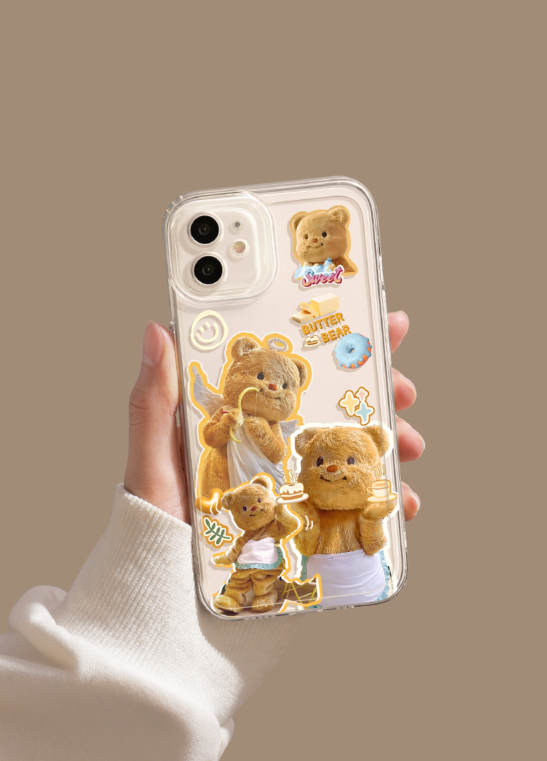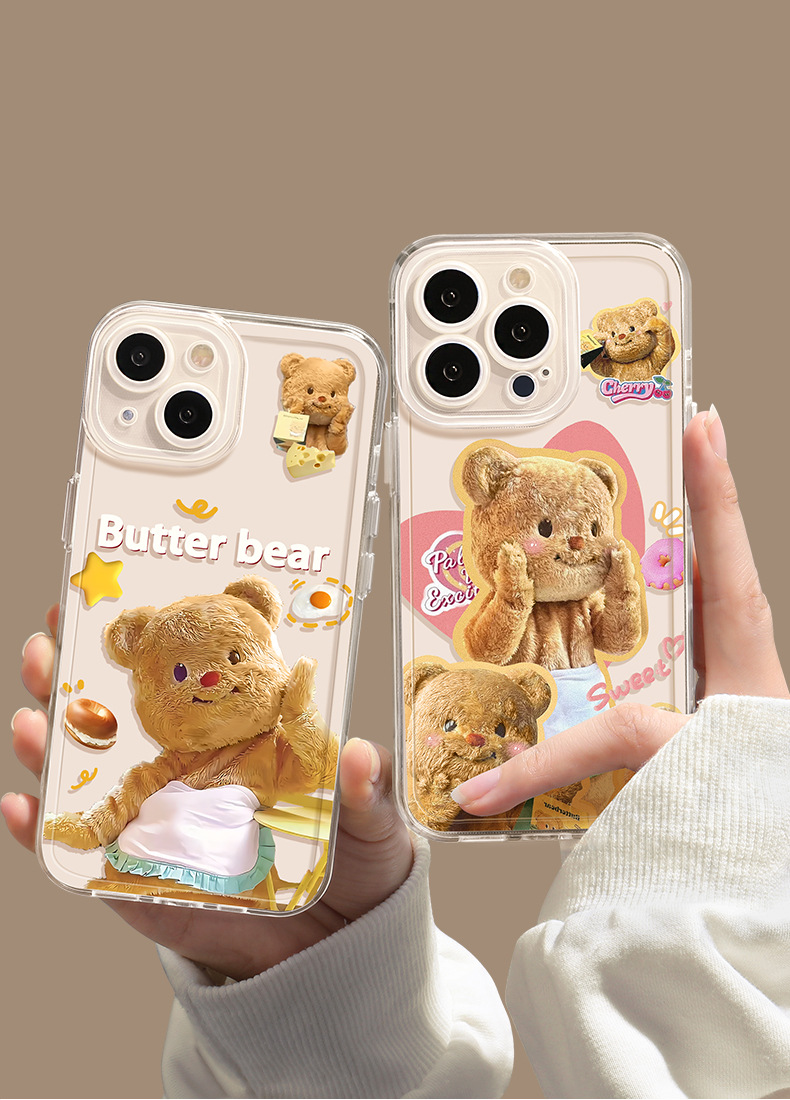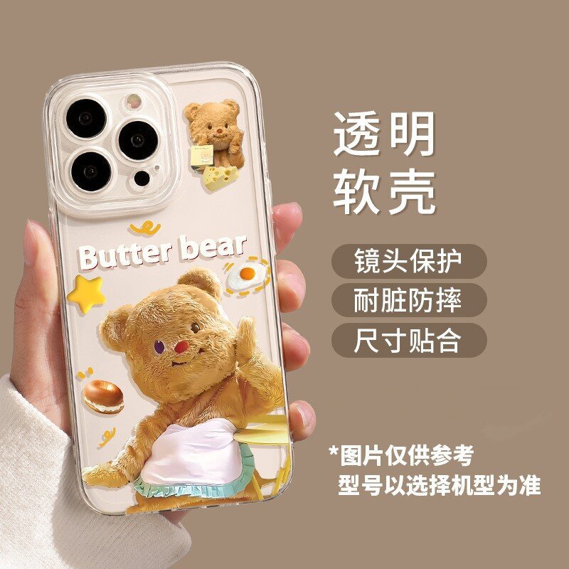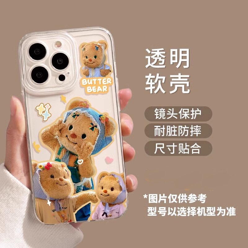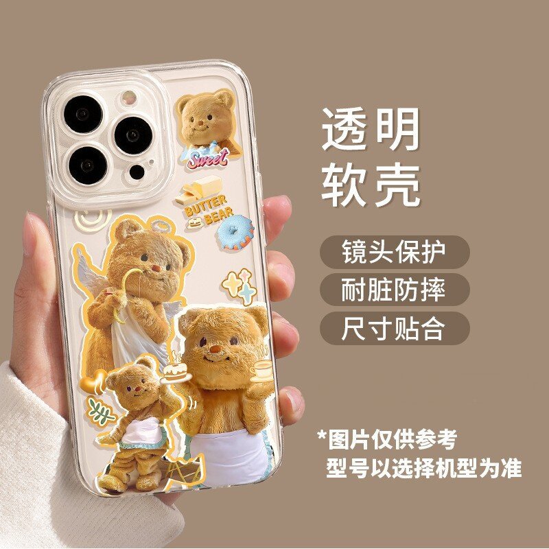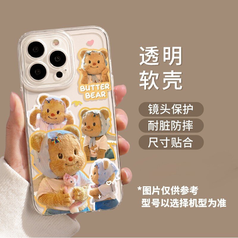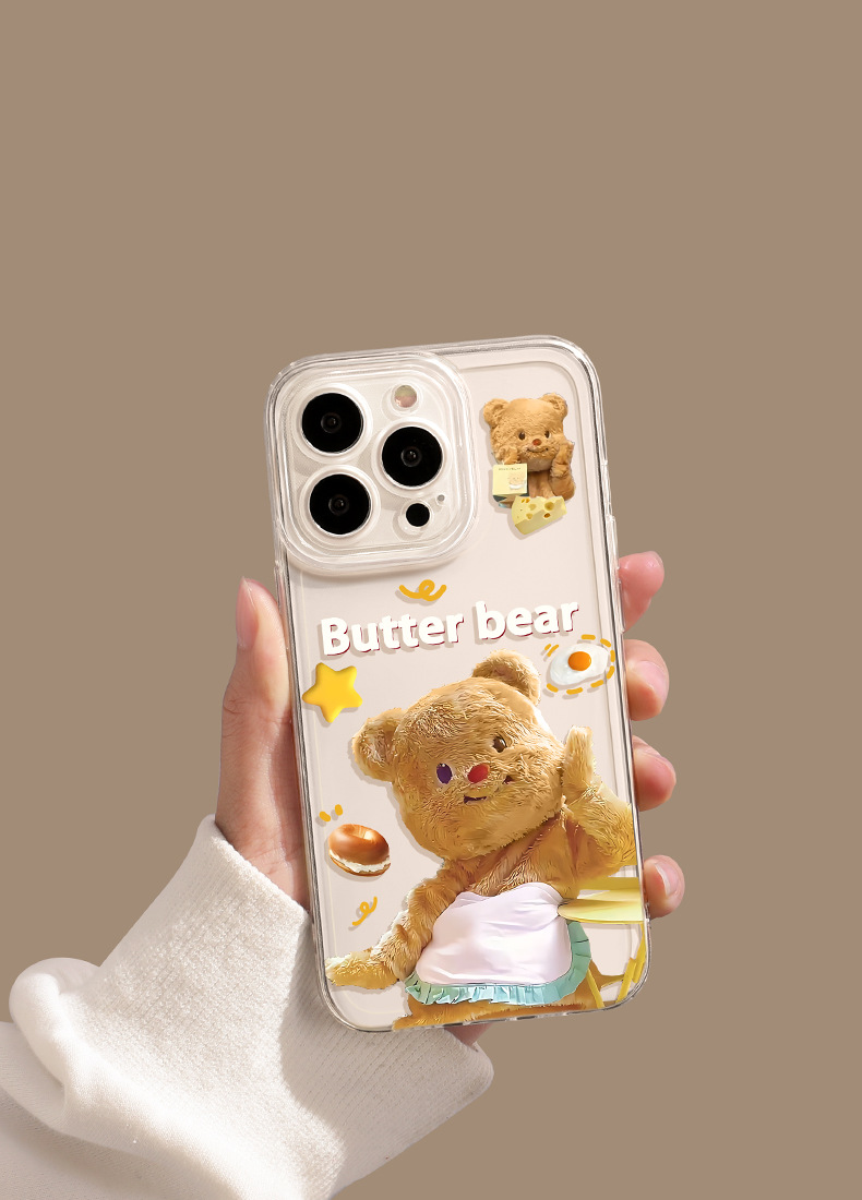 애플 16/17pro 휴대폰 케이스에 적합 만화 캐릭터 15promx 버터베어 투명 샤오미 휴대폰 케이스