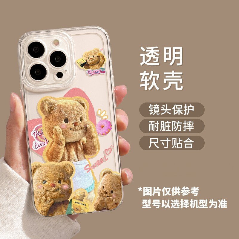 优思顿适用苹果13手机壳新款iphone15promx黄油小熊pro镜头max全包plus防摔xs软壳x硅胶11可爱12透明14女款13