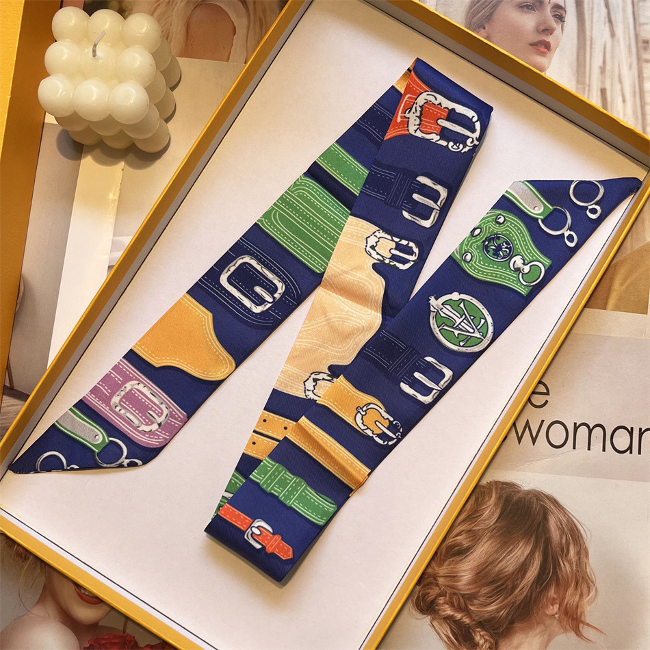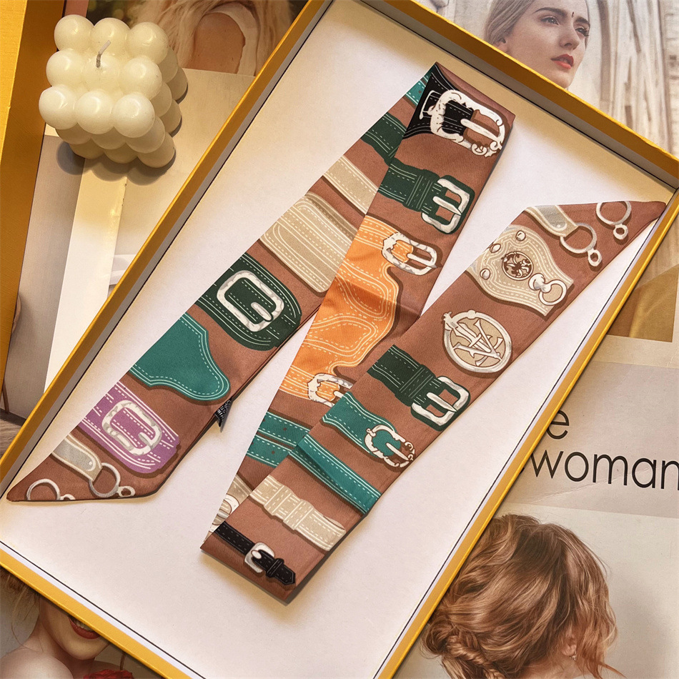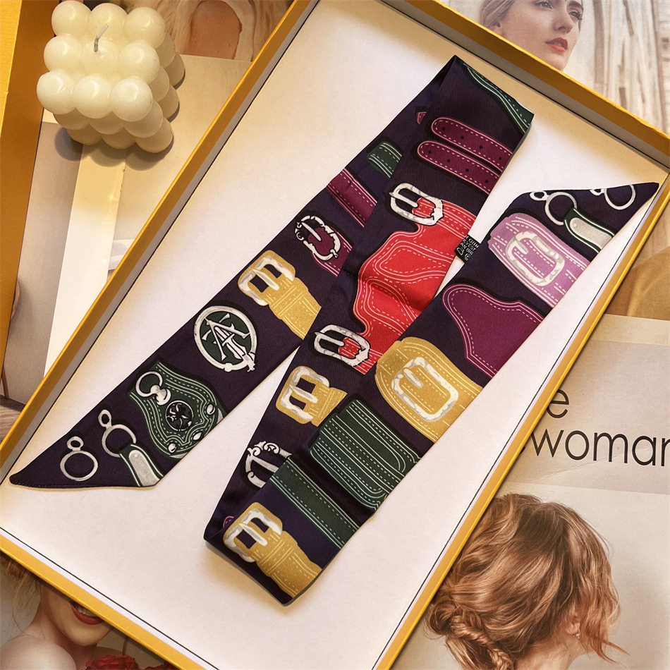 고급 프렌치 레트로 양면 양면 인쇄 실크 스카프 넥타이 가방 리본 장식 가방 손잡이 인쇄 긴 리본스토어 가기
