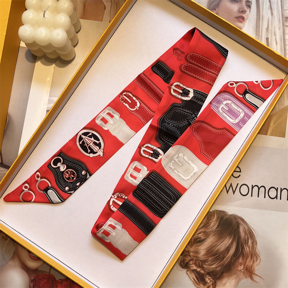 고급 프렌치 레트로 양면 양면 인쇄 실크 스카프 넥타이 가방 리본 장식 가방 손잡이 인쇄 긴 리본