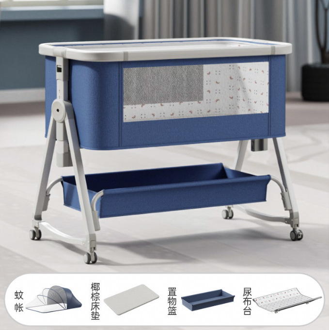 • 블루 모델 - 알루미늄 합금 + 매트리스 + 모기장 + 보관 바구니 + 기저귀 교환대