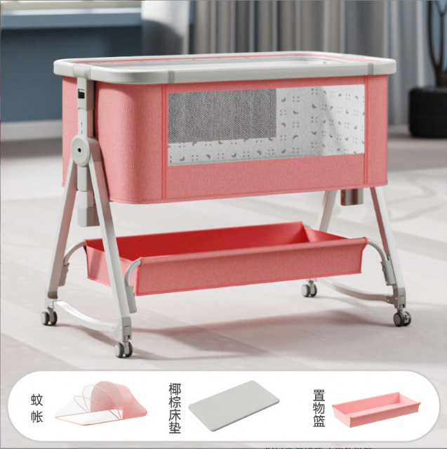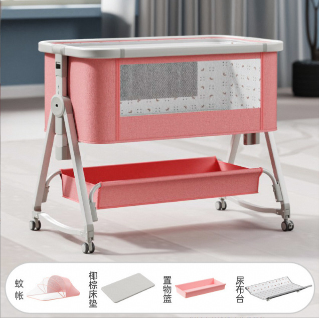 • 핑크 - 알루미늄 합금 나뭇결 모델 + 매트리스 + 모기장 + 수납바구니 + 기저귀교환대