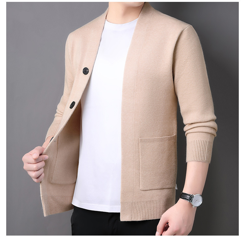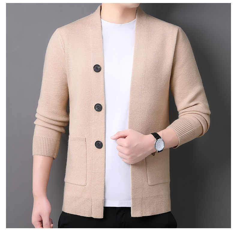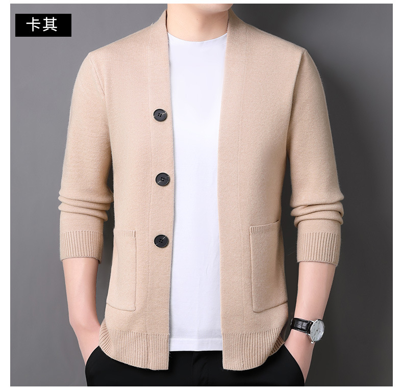[플러스 지방 플러스 사이즈] 2024 가을과 겨울 스웨터 남성용 코트 뚱보 젊고 중년 칼라리스 카디건 스웨터