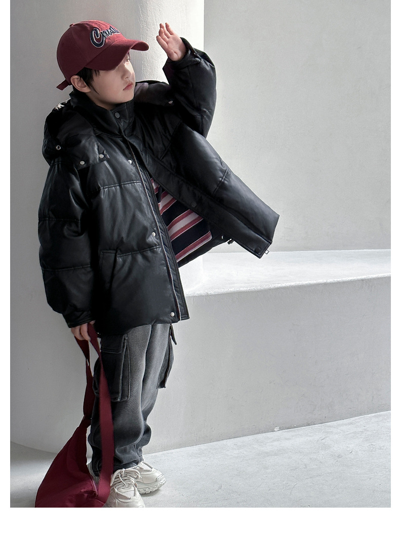 2025 겨울 의류 고급 다운 충전재 무세탁 PU 가죽 아동용 다운 재킷 신규 국가 표준 90% 백오리털 남아용 다운 재킷
