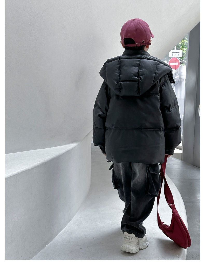 2025冬季撞色男童棉服户外防水连帽外套织里童装儿童冬装夹棉棉衣