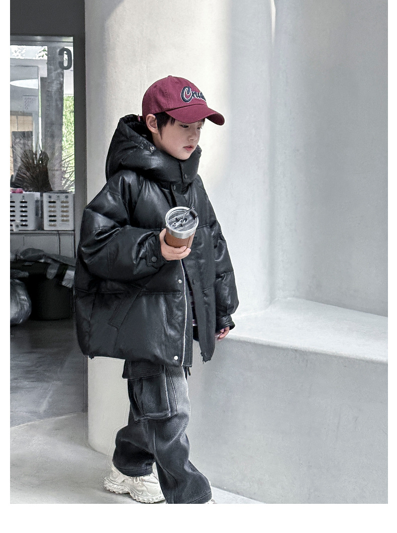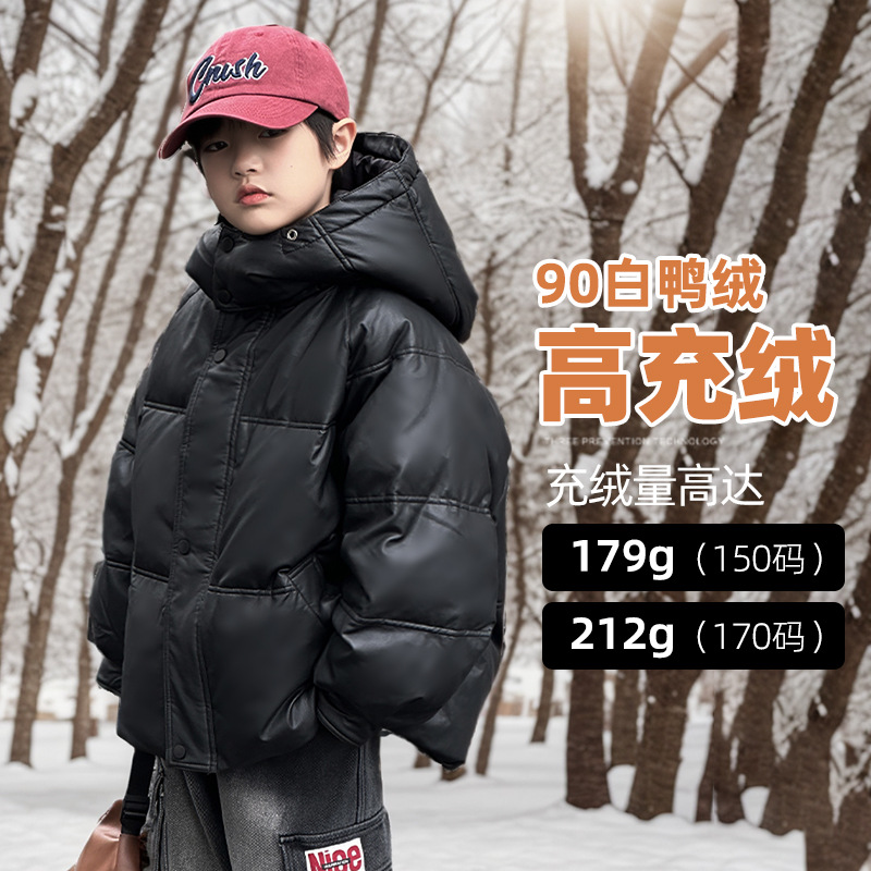 2025 겨울 의류 고급 다운 충전재 무세탁 PU 가죽 아동용 다운 재킷 신규 국가 표준 90% 백오리털 남아용 다운 재킷스토어 가기