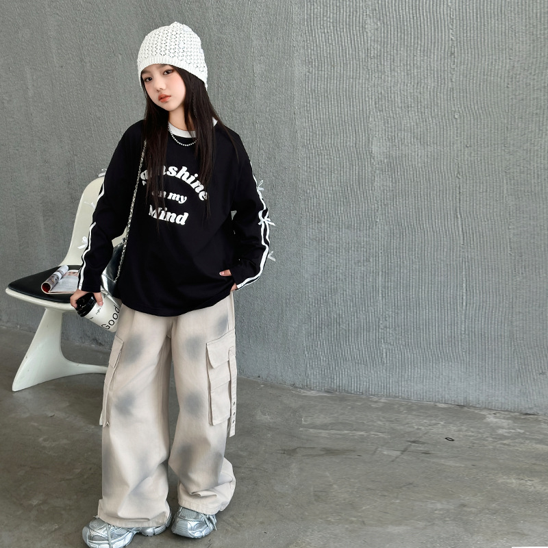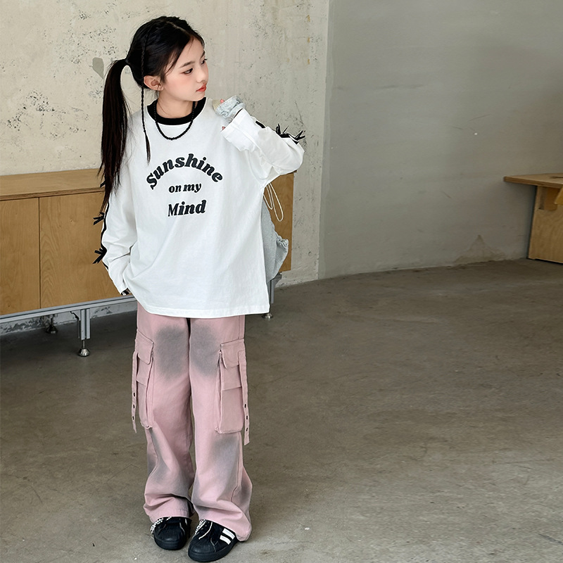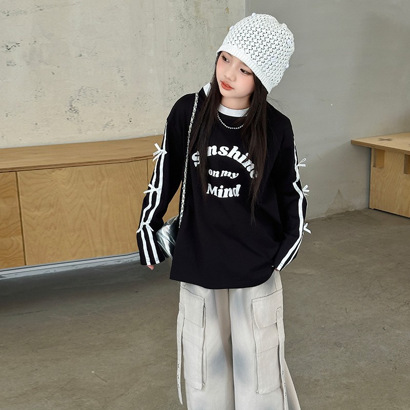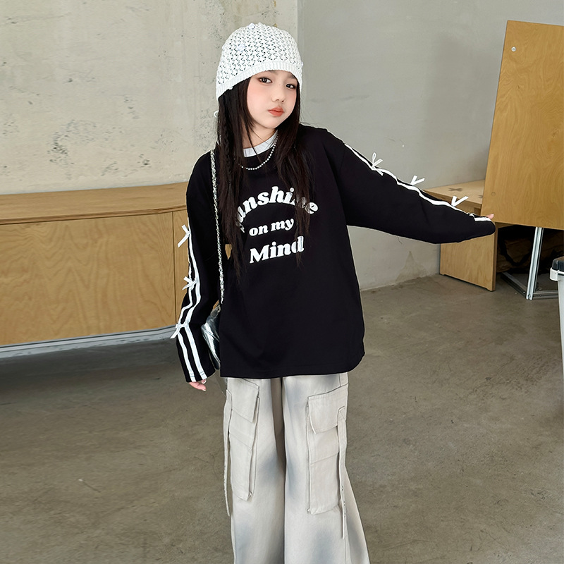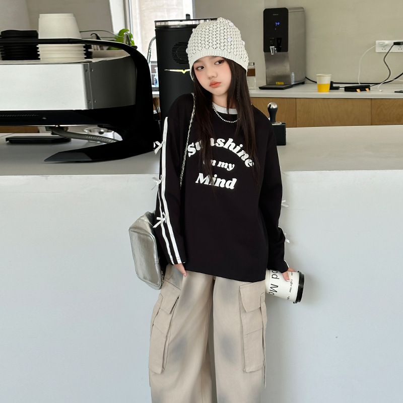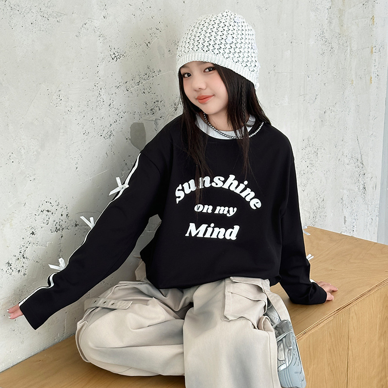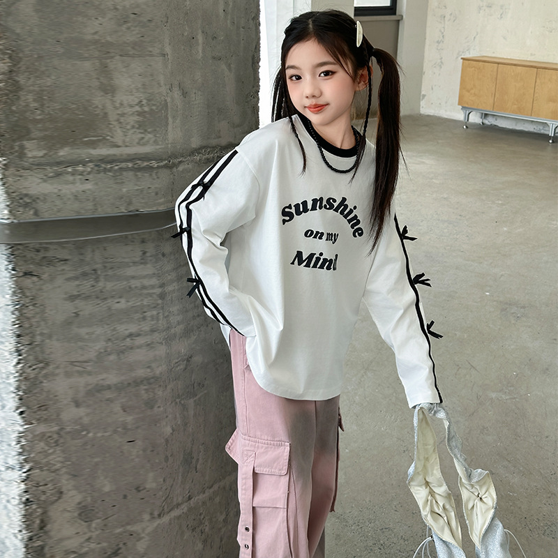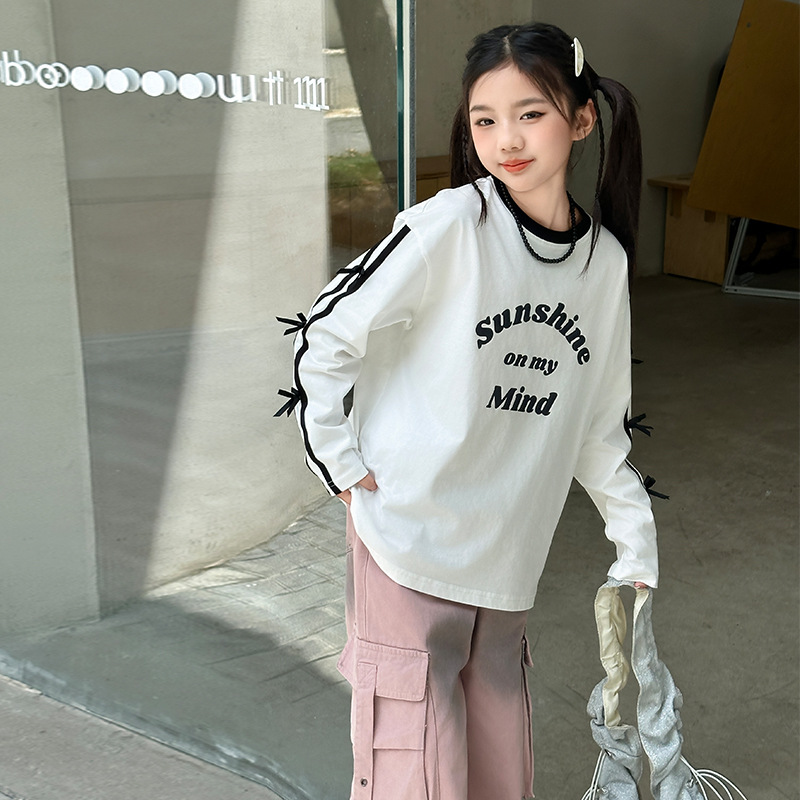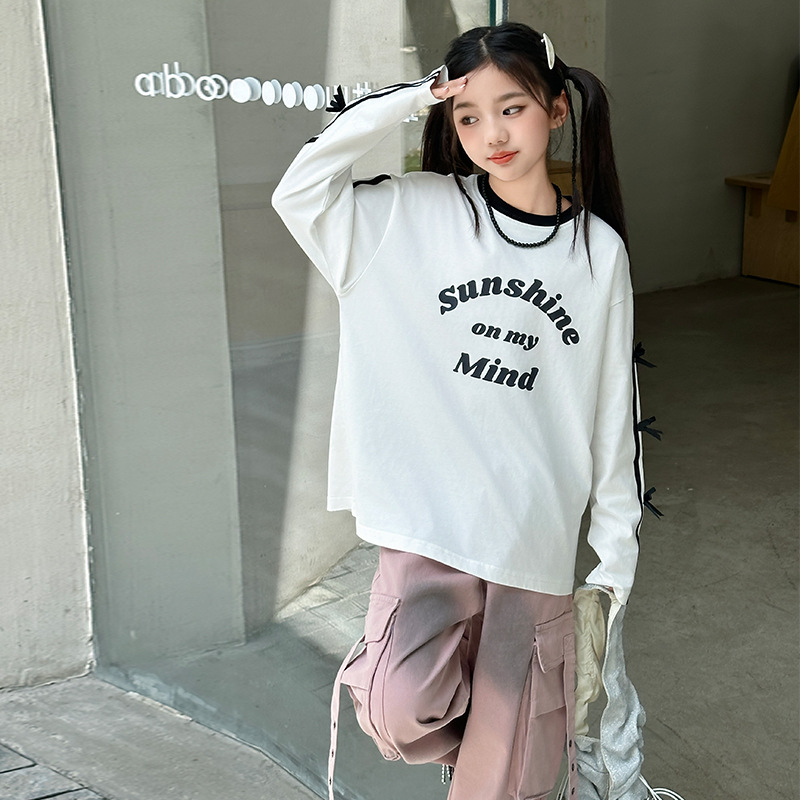 봄 중형 및 대형 소녀 긴팔 티셔츠 새로운 아동 의류 아동 소녀 활 느슨한 탑 겉옷 맞춤형 유행 t스토어 가기
