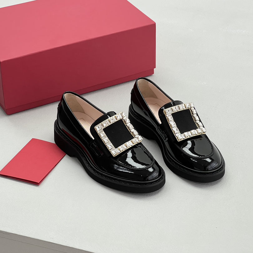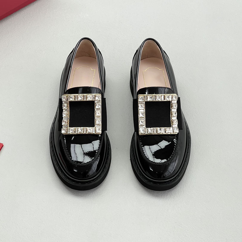 새로운 라인스톤 스퀘어 버클 로퍼 여성 영국 스타일 레트로 정품 가죽 라운드 발가락 두꺼운 밑창 작은 가죽 신발 높은 내마모성 싱글 레이어 신발스토어 가기