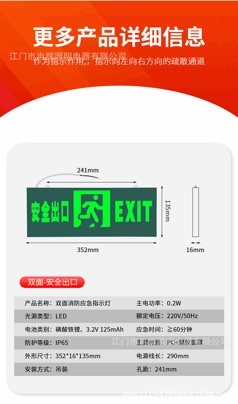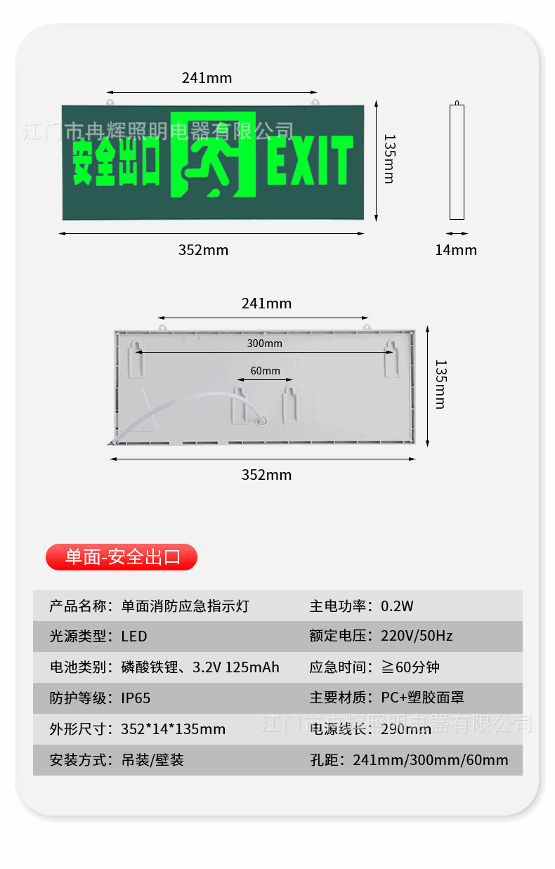 Ran Hui 안전 출구 표시등 화재 비상 표시등 통로 LED 대피 표시등 안전 인증