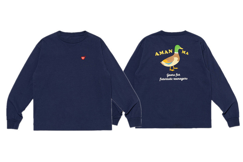 일본 스타일 레트로 강아지 경주 사랑 오리 호랑이 남자 커플 긴 소매 티셔츠 Instagram 스타일 가을과 겨울 탑
