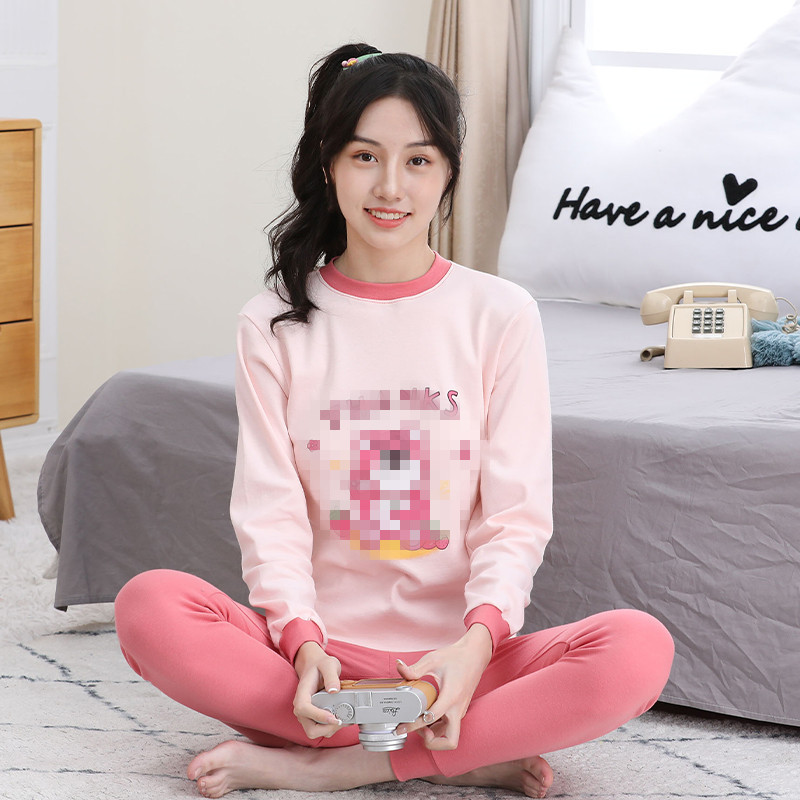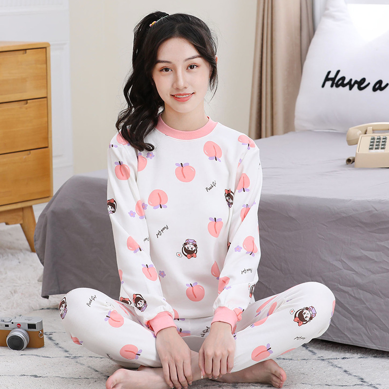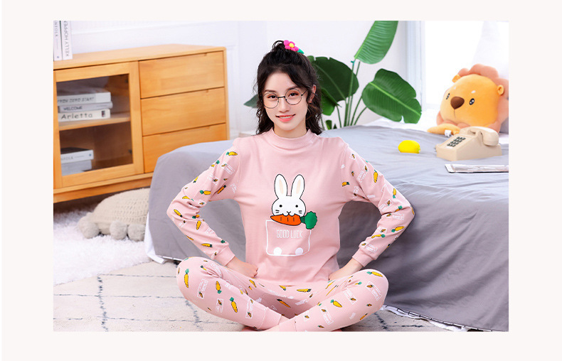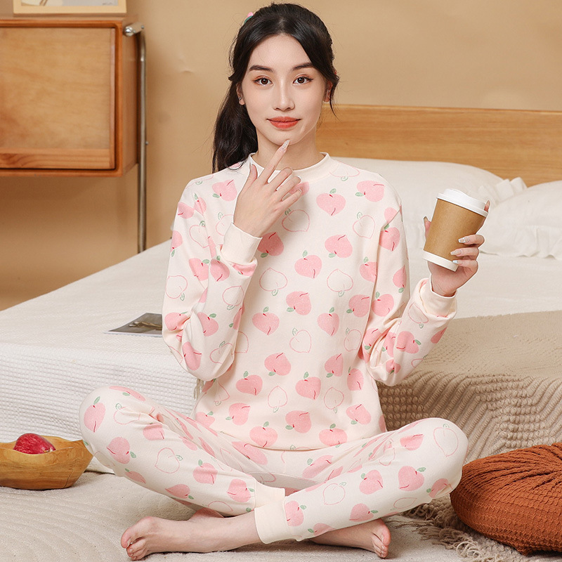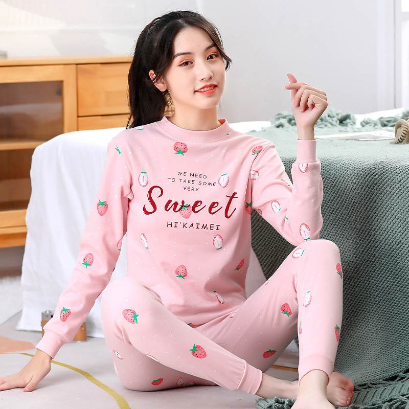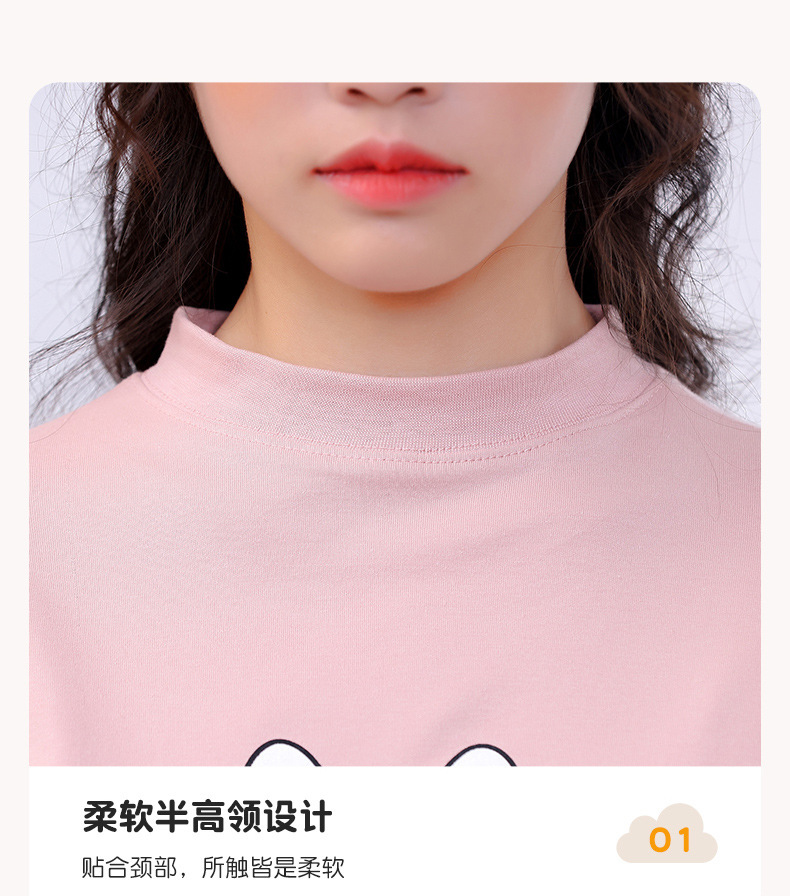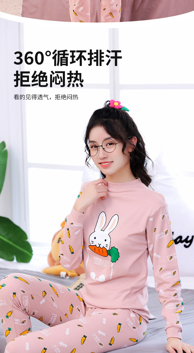 2024 가을/겨울 청소년 중간 칼라 코튼 속옷 세트 어린이 면 스웨터 홈 착용 가을 옷과 바지 두 조각