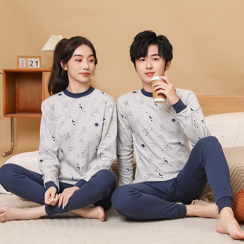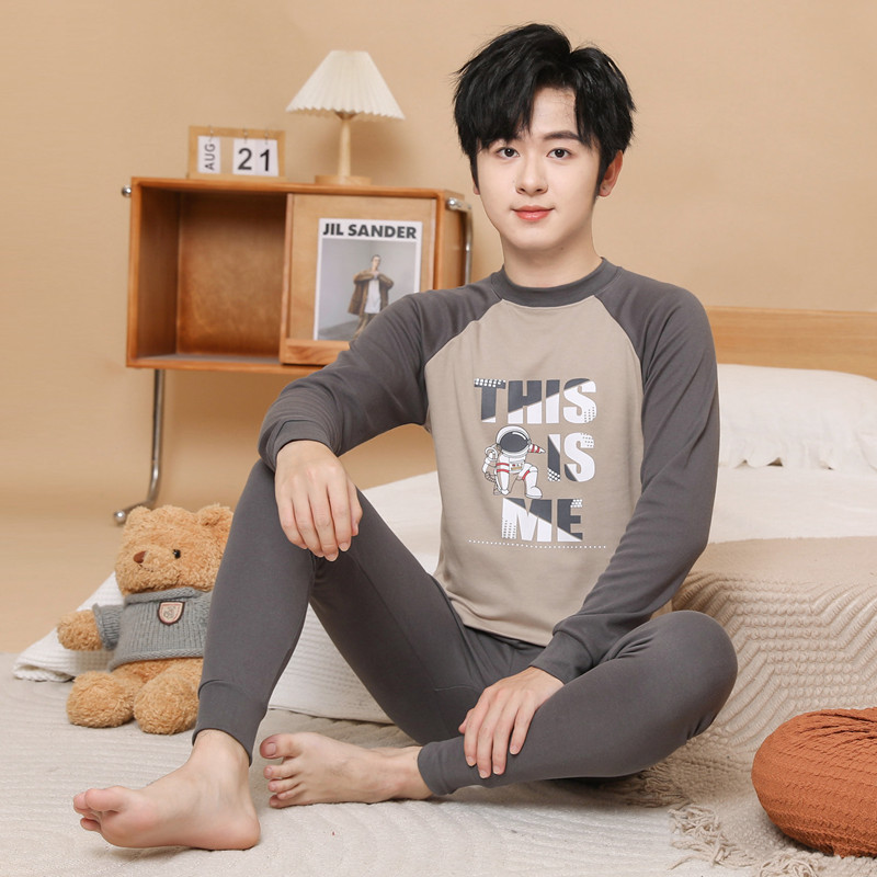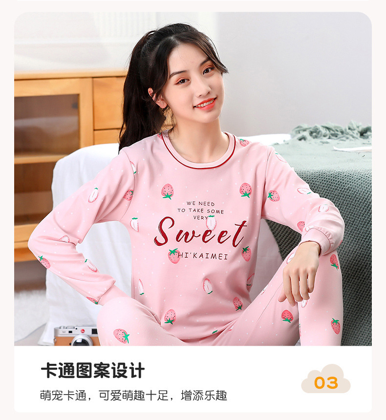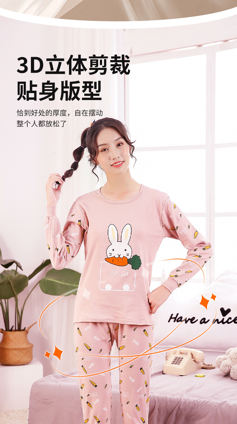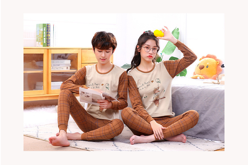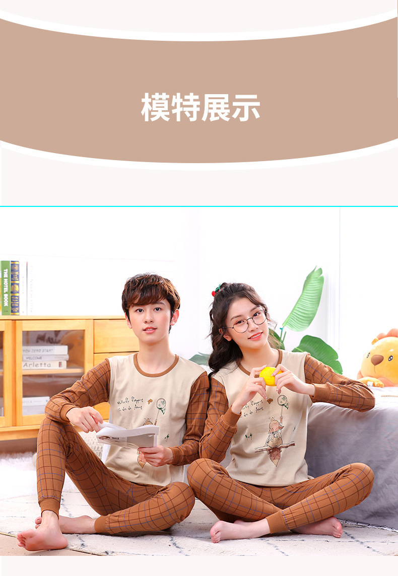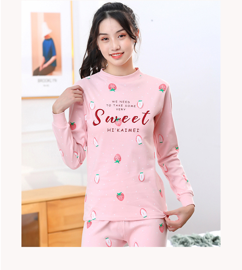 2024 가을/겨울 청소년 중간 칼라 코튼 속옷 세트 어린이 면 스웨터 홈 착용 가을 옷과 바지 두 조각