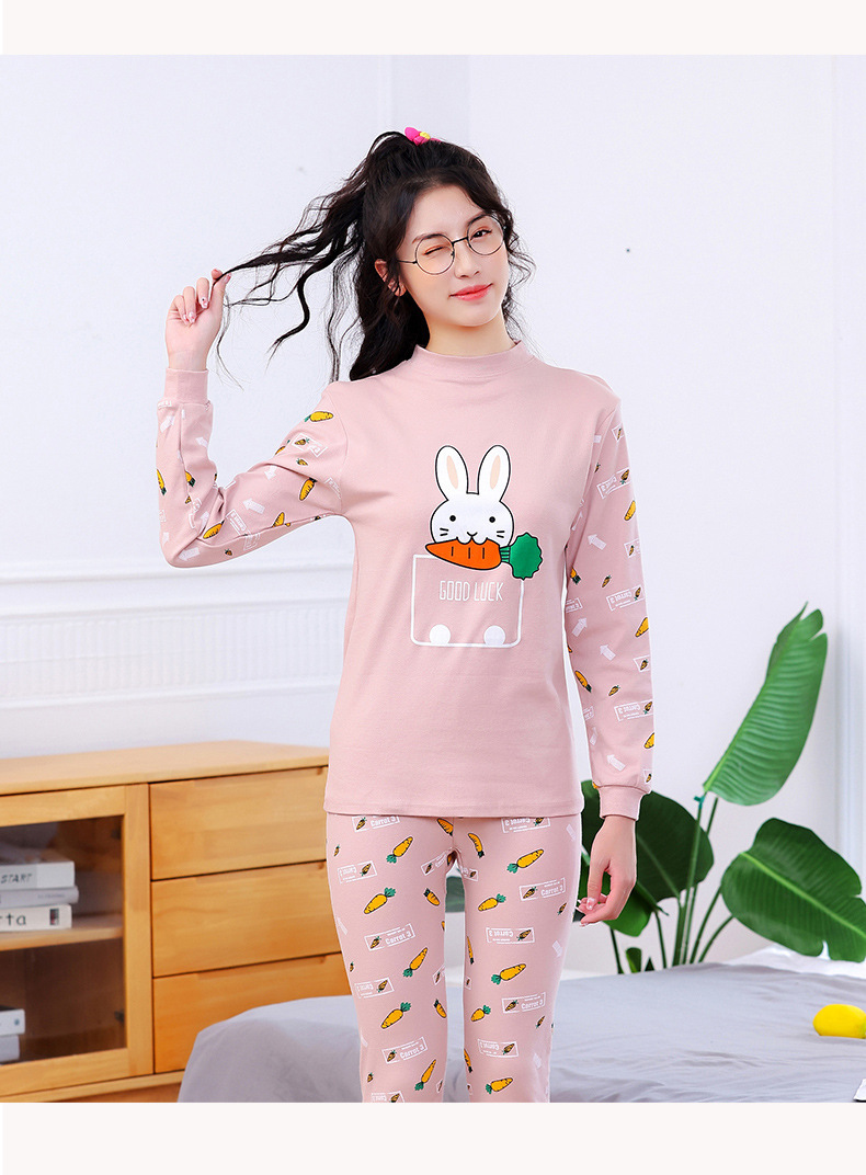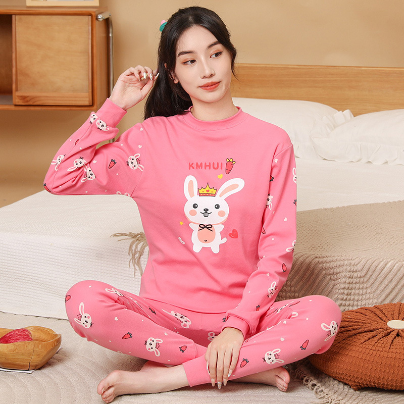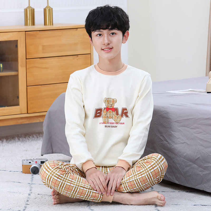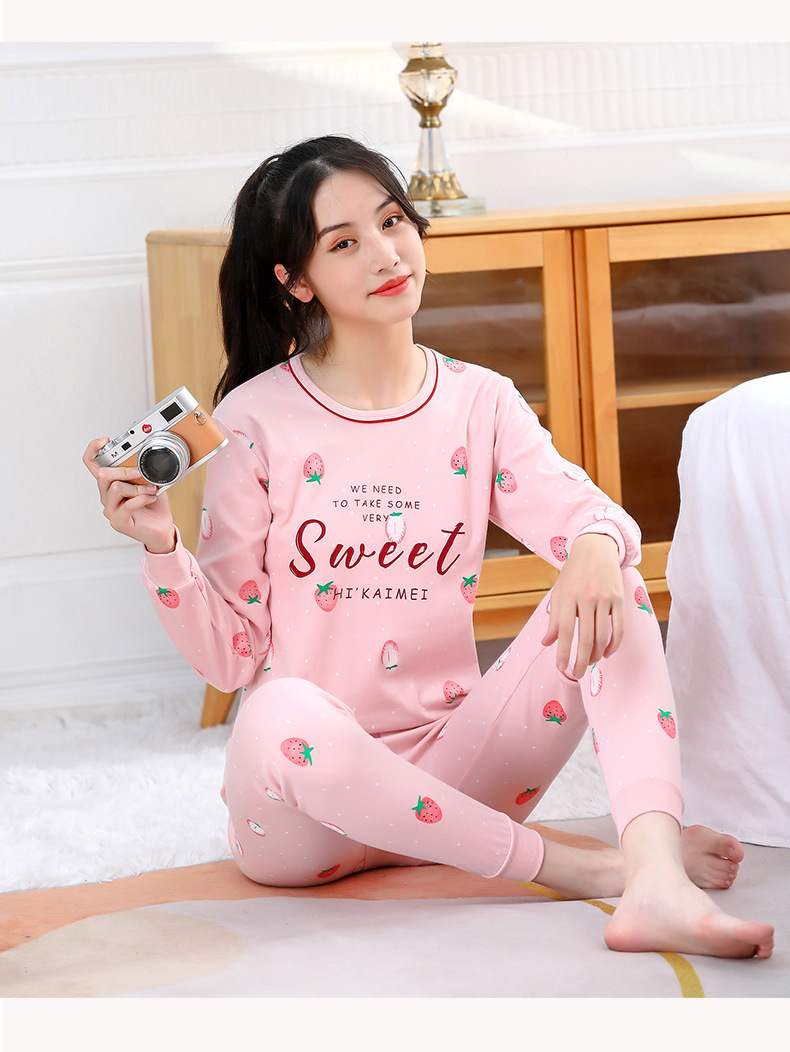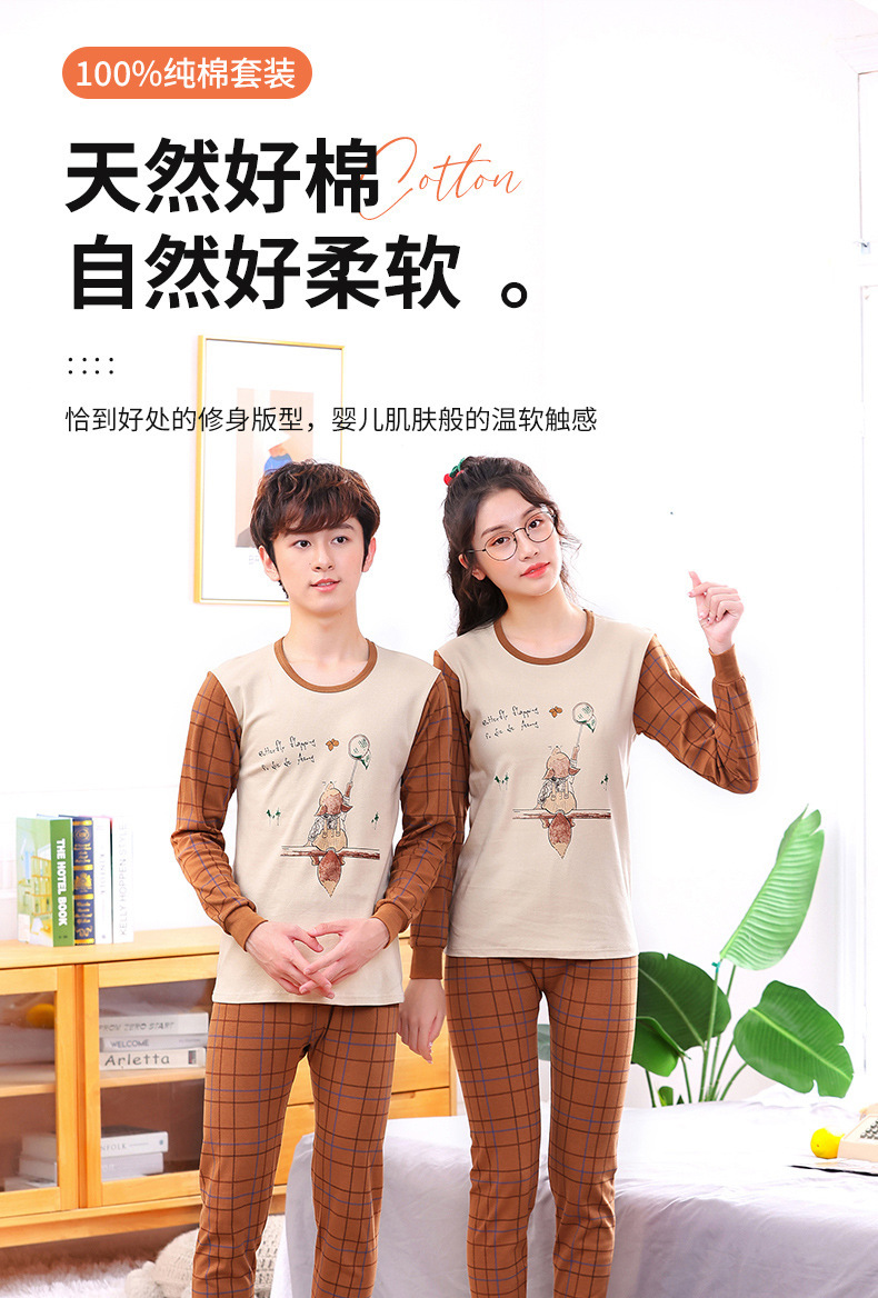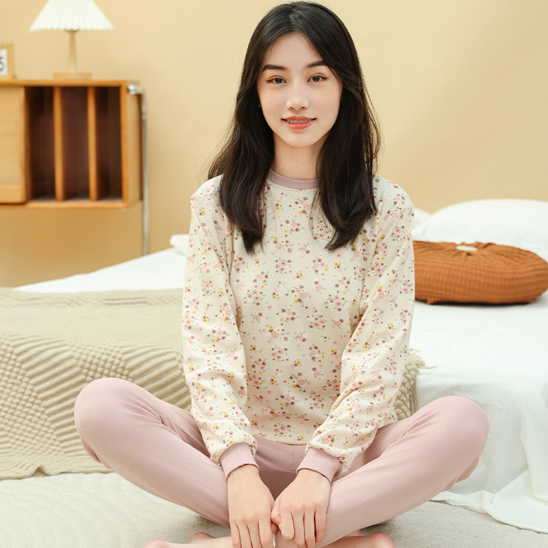 2024 가을/겨울 청소년 중간 칼라 코튼 속옷 세트 어린이 면 스웨터 홈 착용 가을 옷과 바지 두 조각