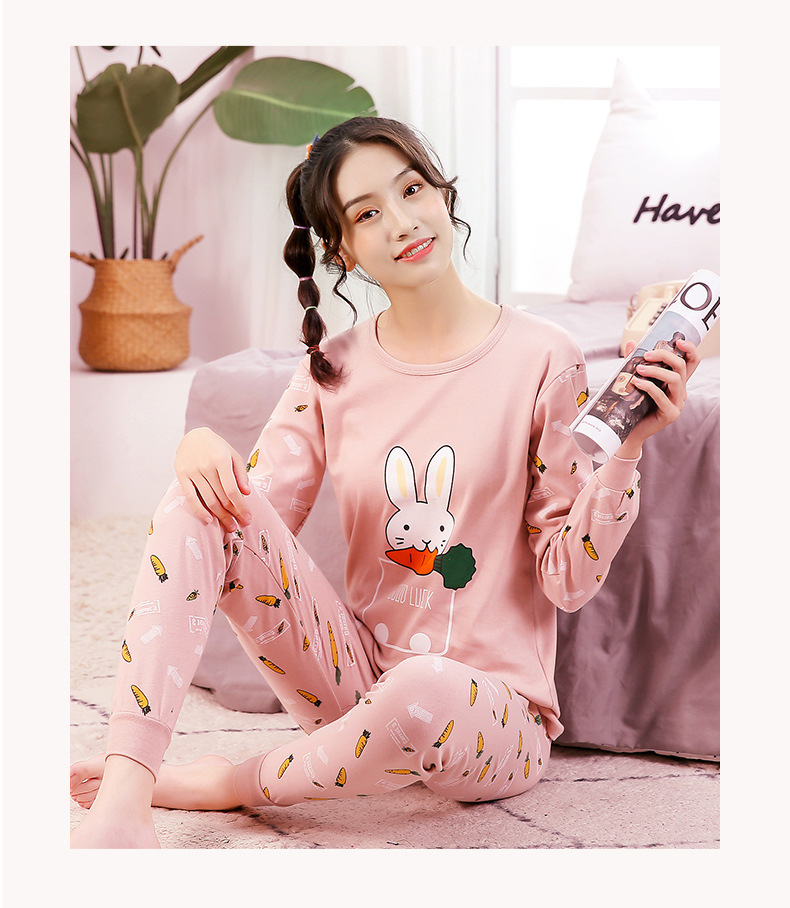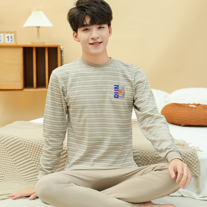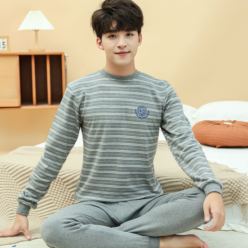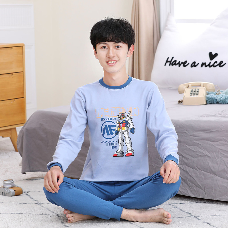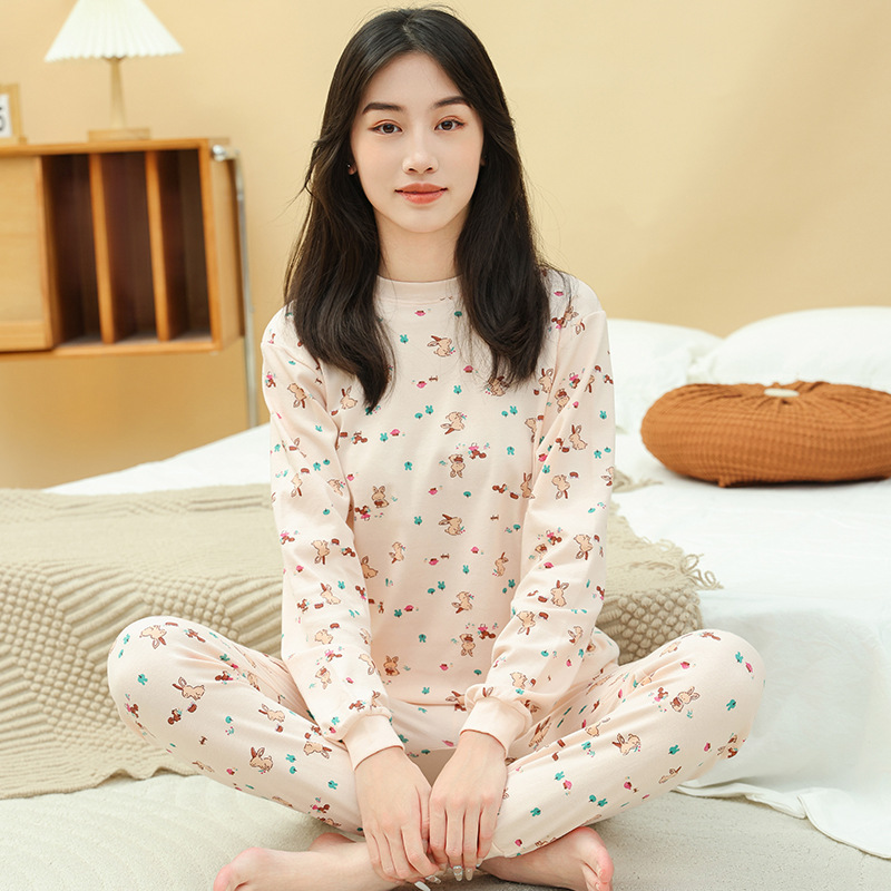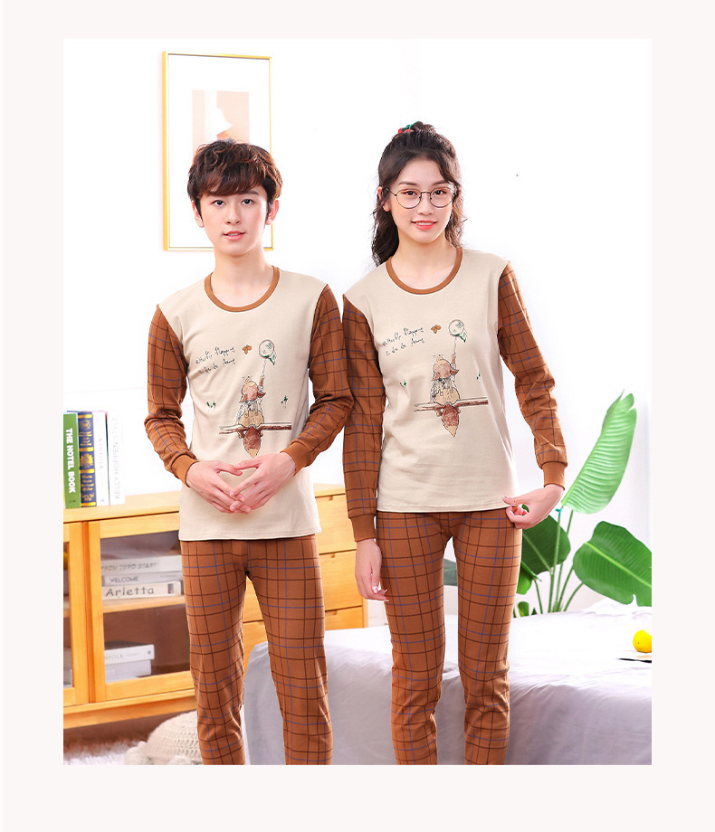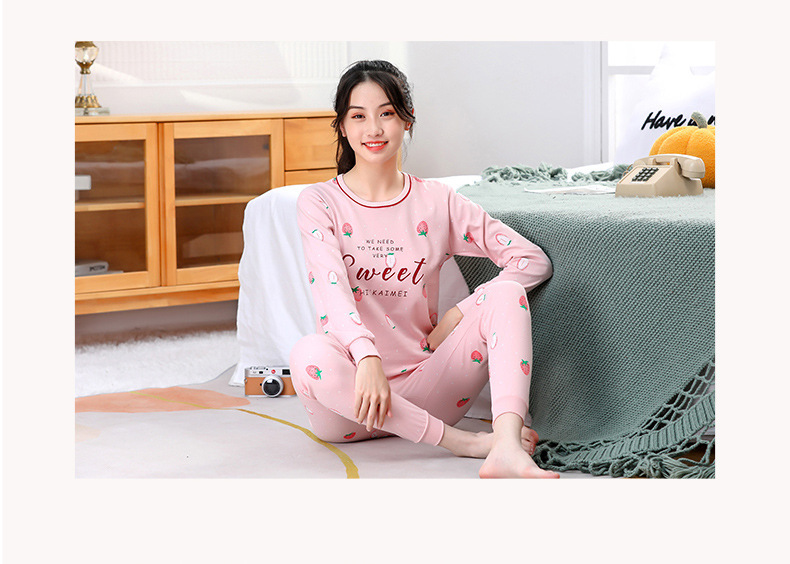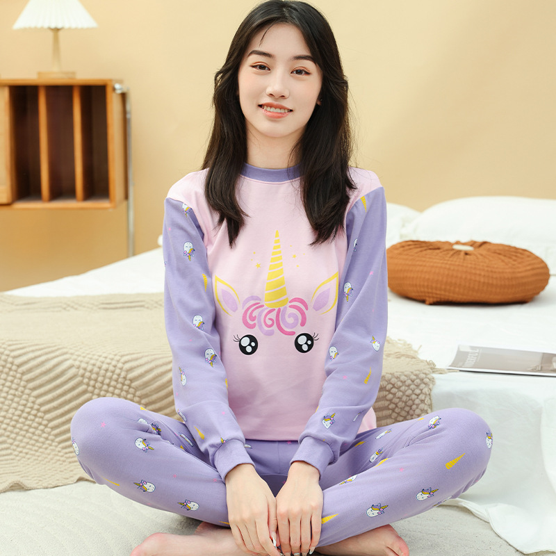 2024 가을/겨울 청소년 중간 칼라 코튼 속옷 세트 어린이 면 스웨터 홈 착용 가을 옷과 바지 두 조각