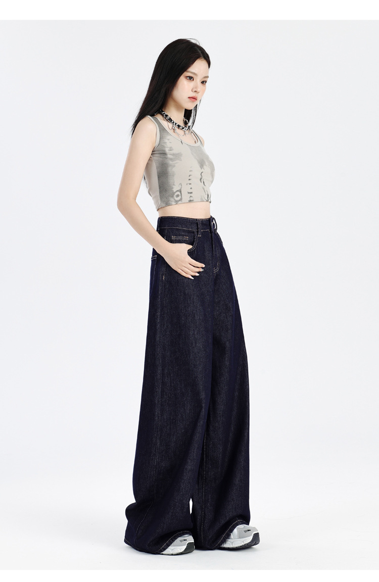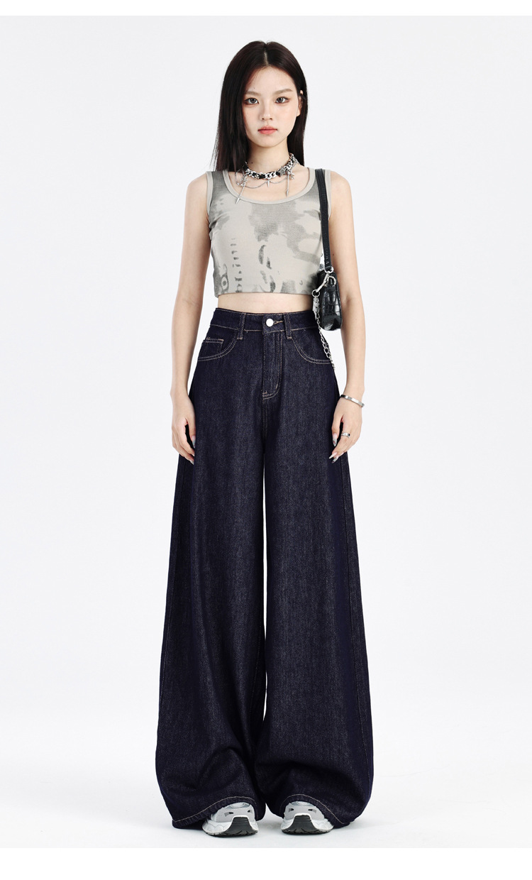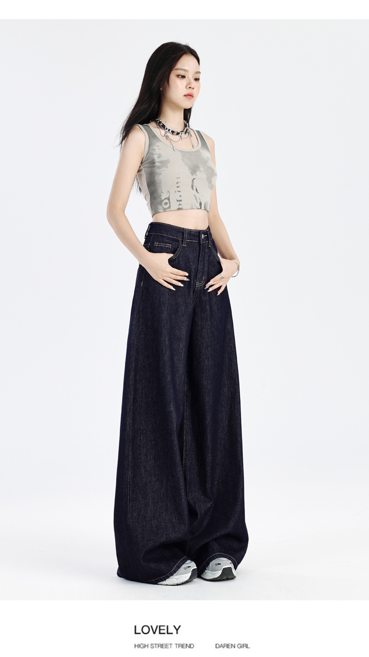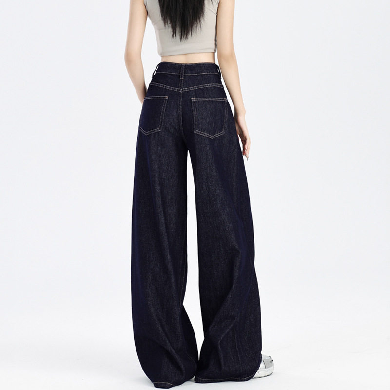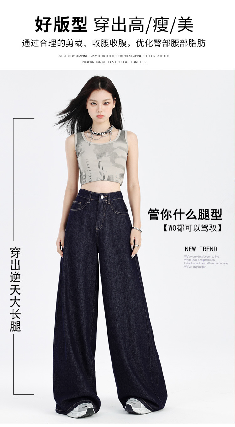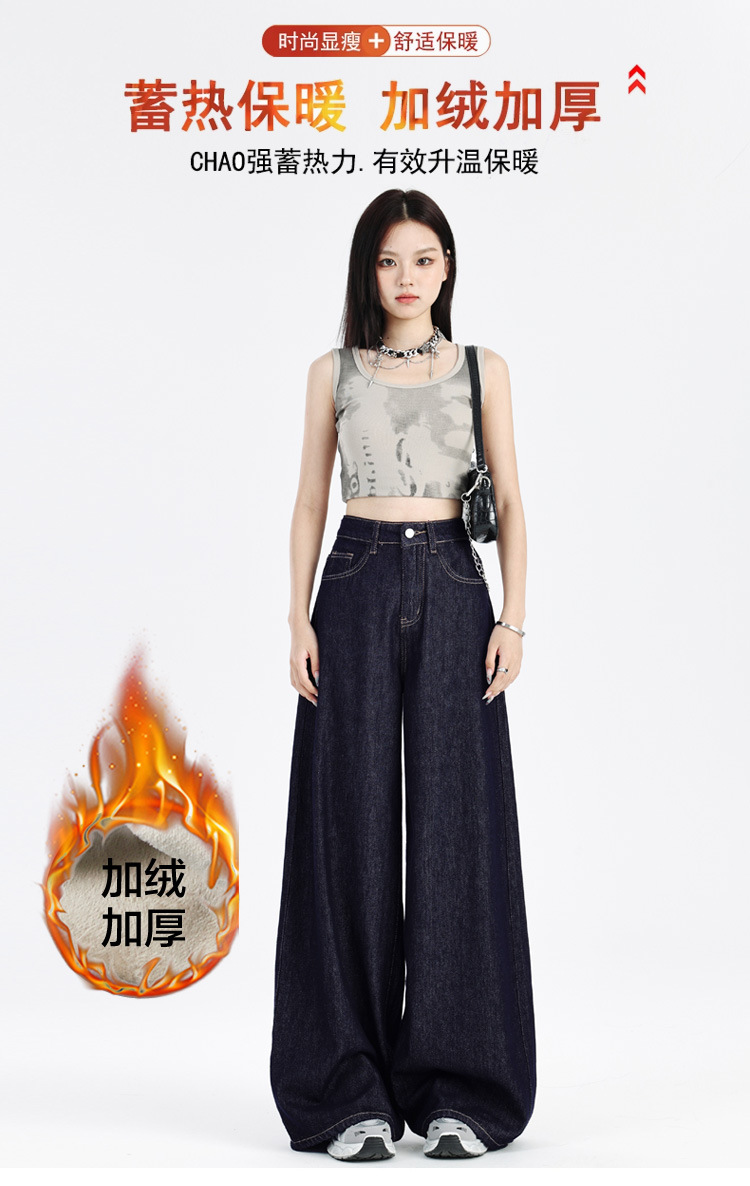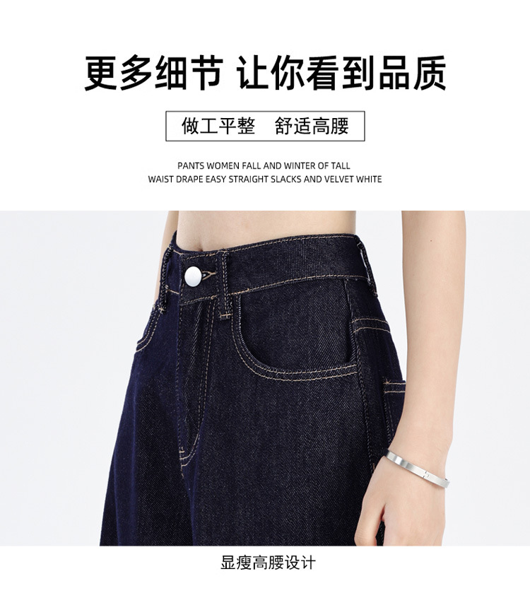 벨벳 안감 와이드 레그 청바지 여성 겨울 신상 드레이프 효과 키 작은 분들을 위한 9부 바지 데님 블루 하이웨이스트 스트레이트 팬츠 슬림핏스토어 가기