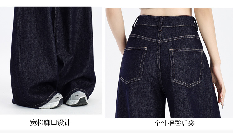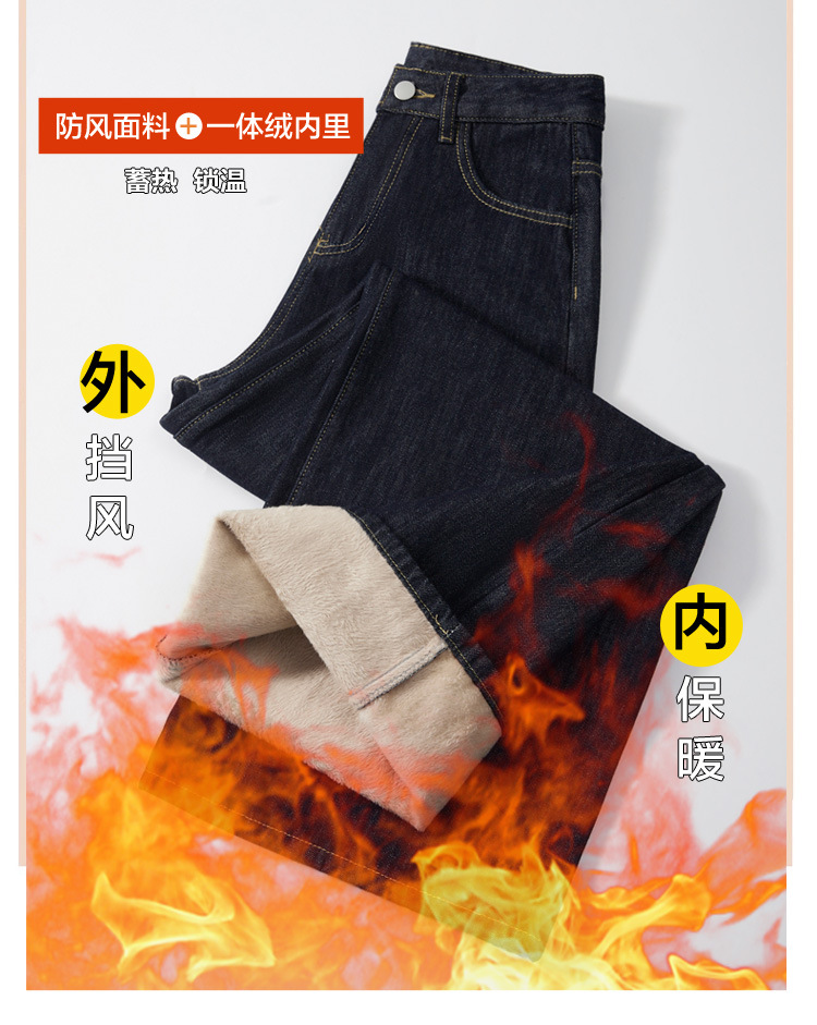 벨벳 안감 와이드 레그 청바지 여성 겨울 신상 드레이프 효과 키 작은 분들을 위한 9부 바지 데님 블루 하이웨이스트 스트레이트 팬츠 슬림핏