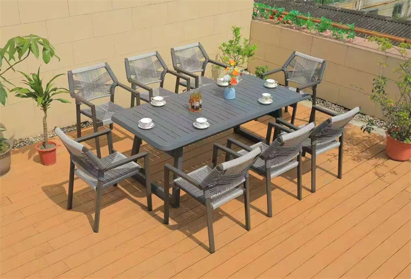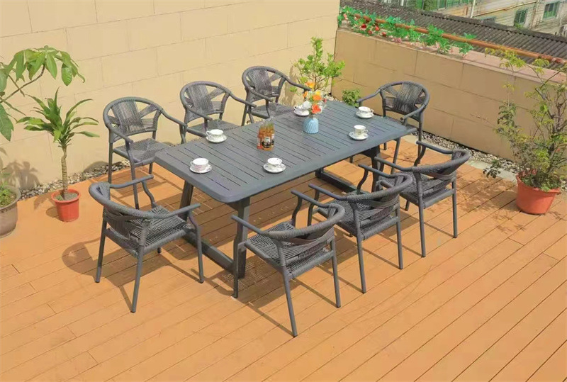 야외 등나무 테이블과 의자 안뜰 빌라 야외 리본 테이블과 의자 조합 알루미늄 합금 긴 테이블 새로운 야외 레저 의자