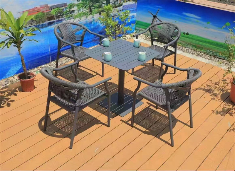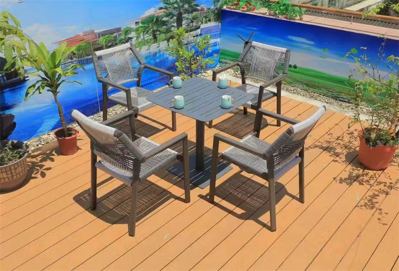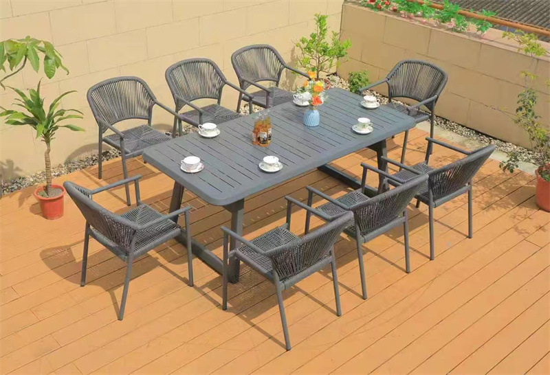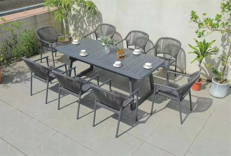 야외 등나무 테이블과 의자 안뜰 빌라 야외 리본 테이블과 의자 조합 알루미늄 합금 긴 테이블 새로운 야외 레저 의자스토어 가기