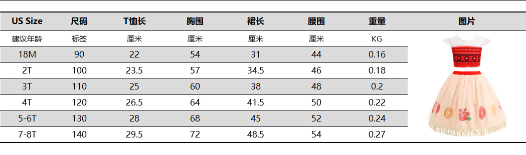 유럽과 미국의 오션 원더 시리즈 Moana 코스프레 레드 스트랩 BABY Moana 잔디 스커트스토어 가기