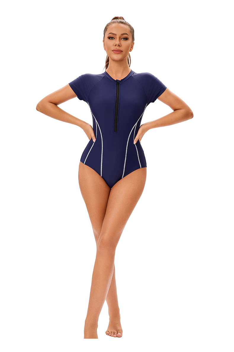 아마존 신상 무지 반팔 서핑복 유럽풍 섹시 삼각 수영복 해외 무역 타이트 지퍼 원피스 수영복