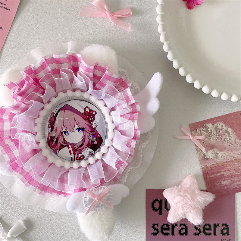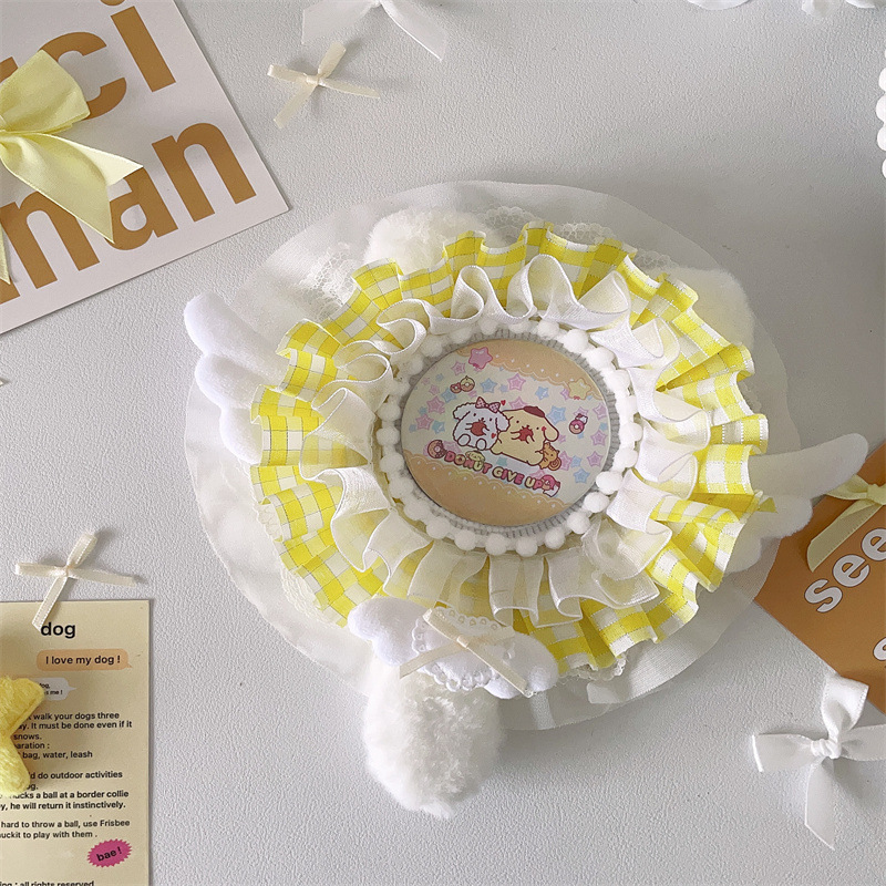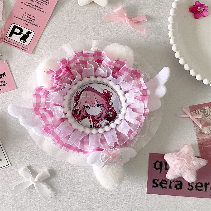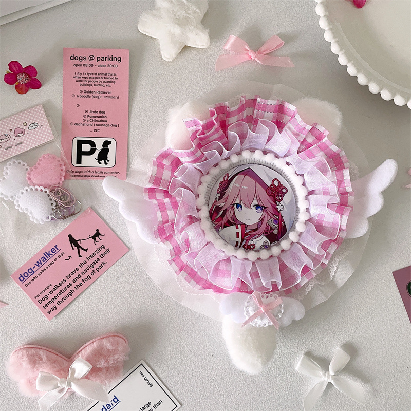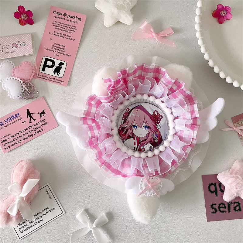 78mm 완성 된 사랑스러운 레이스 수제 DIY 격자 무늬 원단 고양이 브로치 장식 짠스토어 가기
