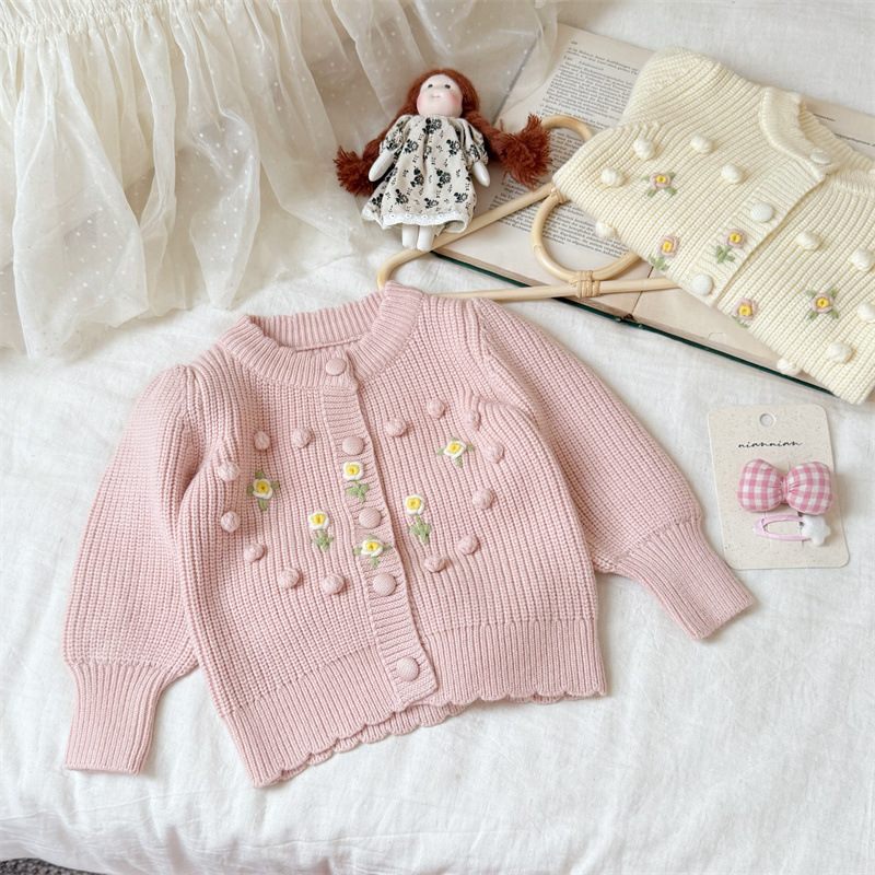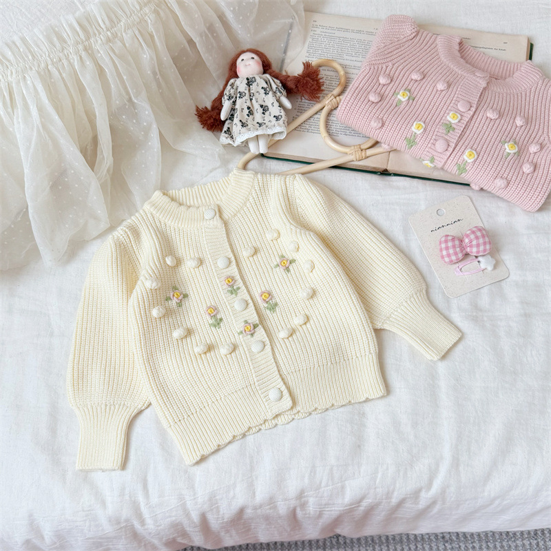 수제 부드러운 가을 겨울 여아용 스웨터 니트 긴팔 가디건 달콤한 아기 상의 코트 외국 무역 공장 직판스토어 가기