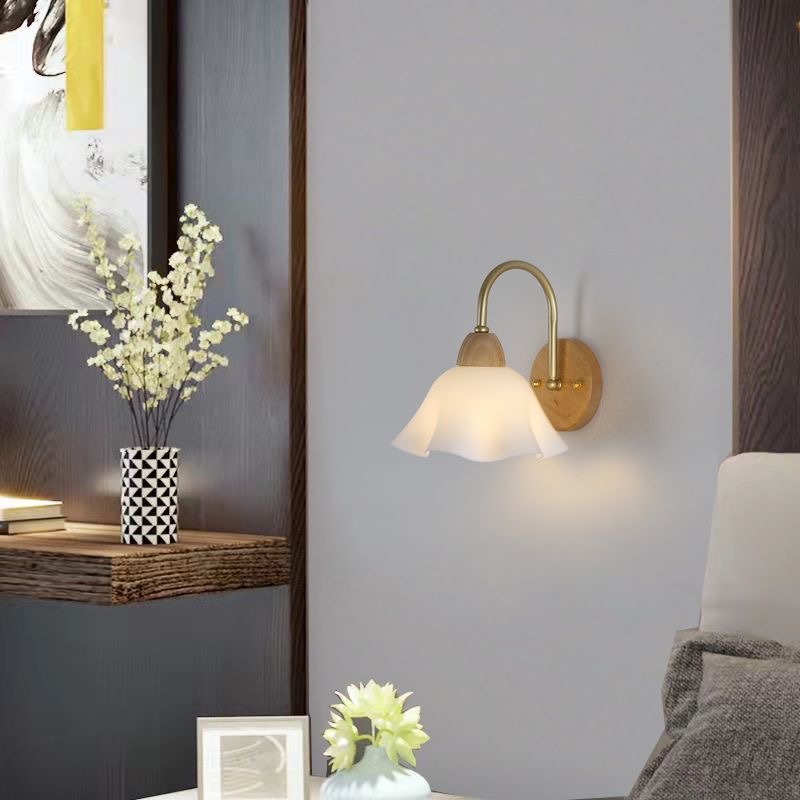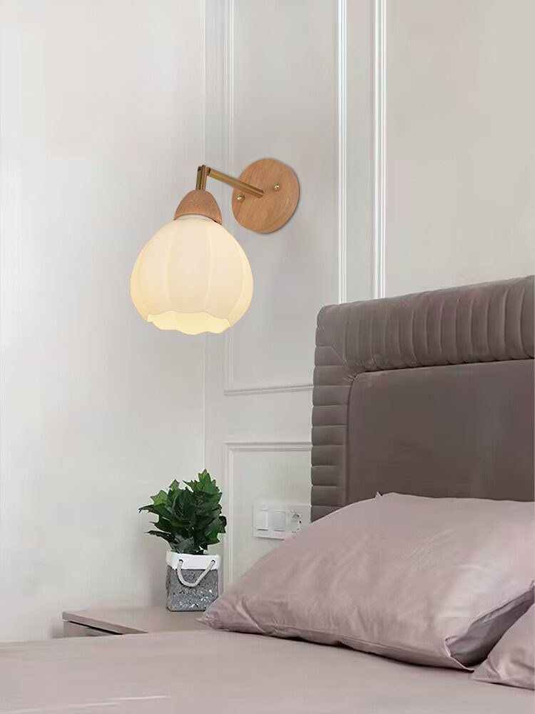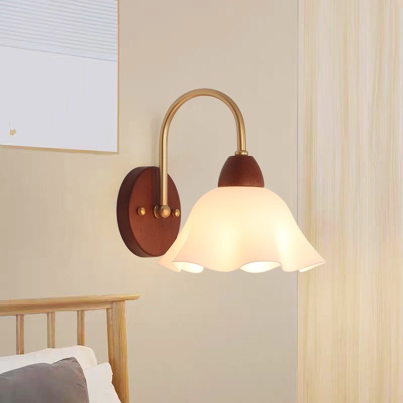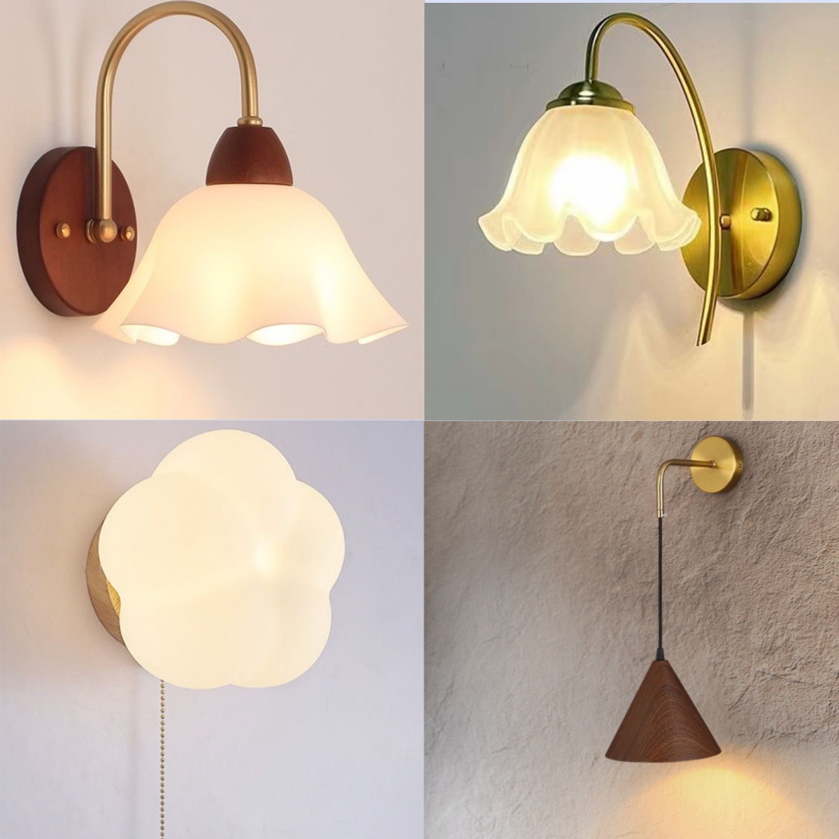 단일 헤드 벽 램프 빛 고급 골동품 간단한 북유럽 벽 램프 침실 침대 옆 램프 새로운 하이 엔드 호두 색상