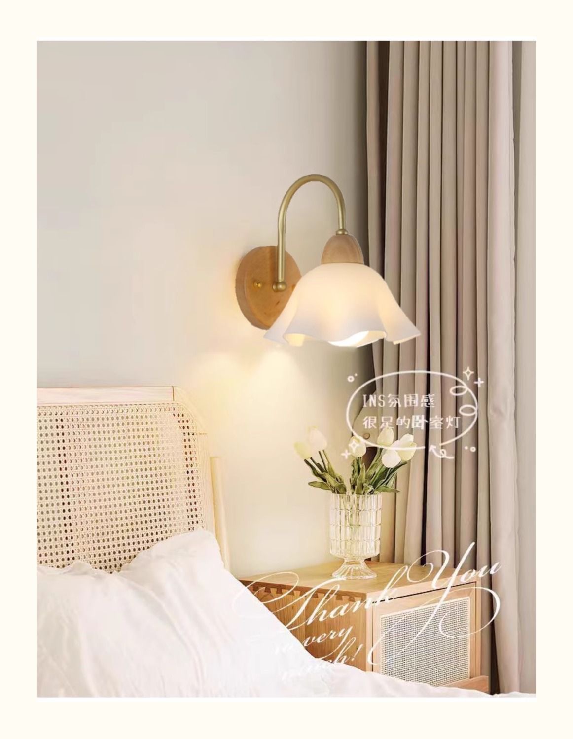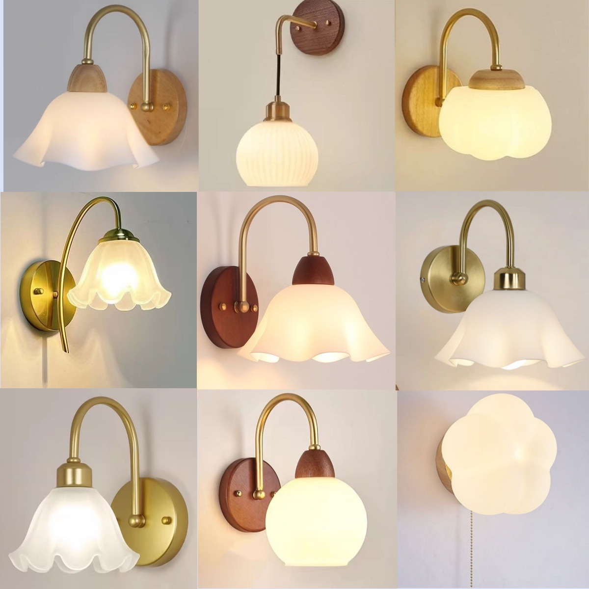 단일 헤드 벽 램프 빛 고급 골동품 간단한 북유럽 벽 램프 침실 침대 옆 램프 새로운 하이 엔드 호두 색상스토어 가기