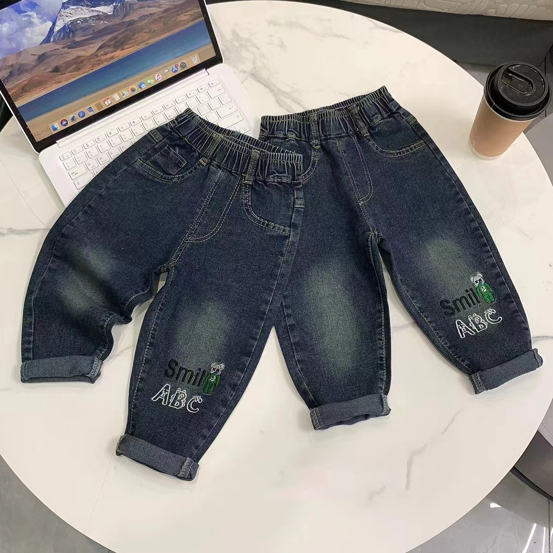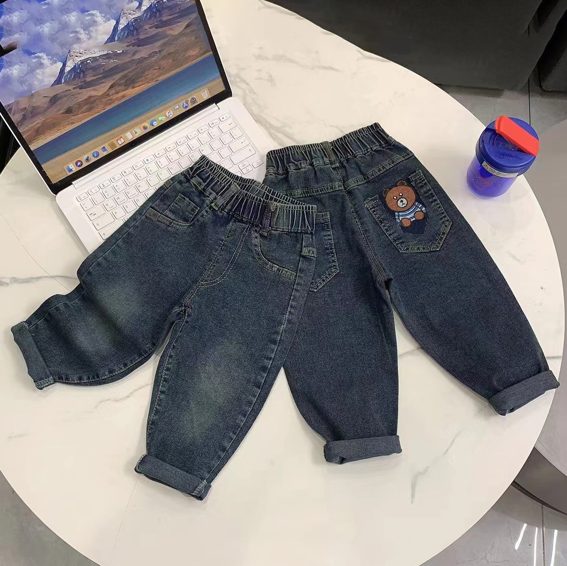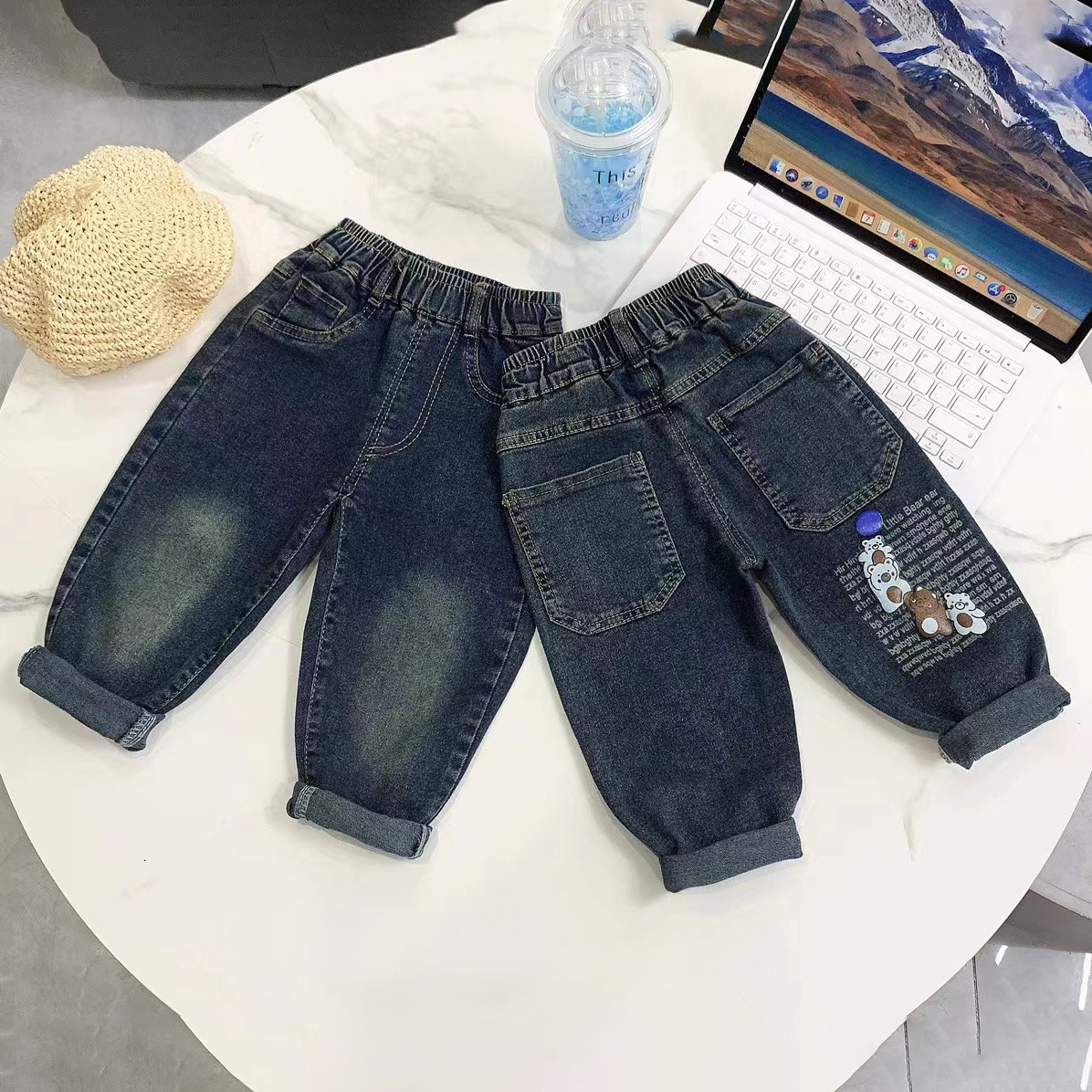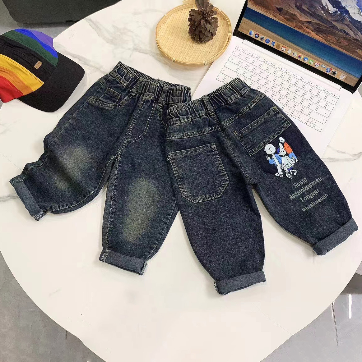 어린이 청바지 봄과 가을 소년 한국 스타일 바지 만화 스트레치 어린이와 소녀 가을을위한 세련된 바지스토어 가기