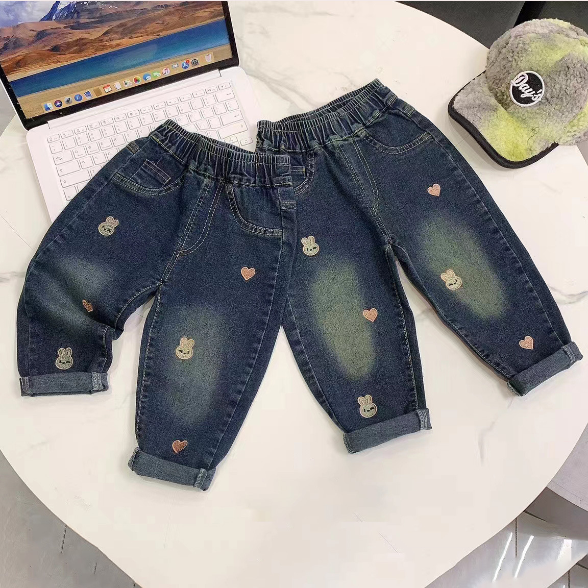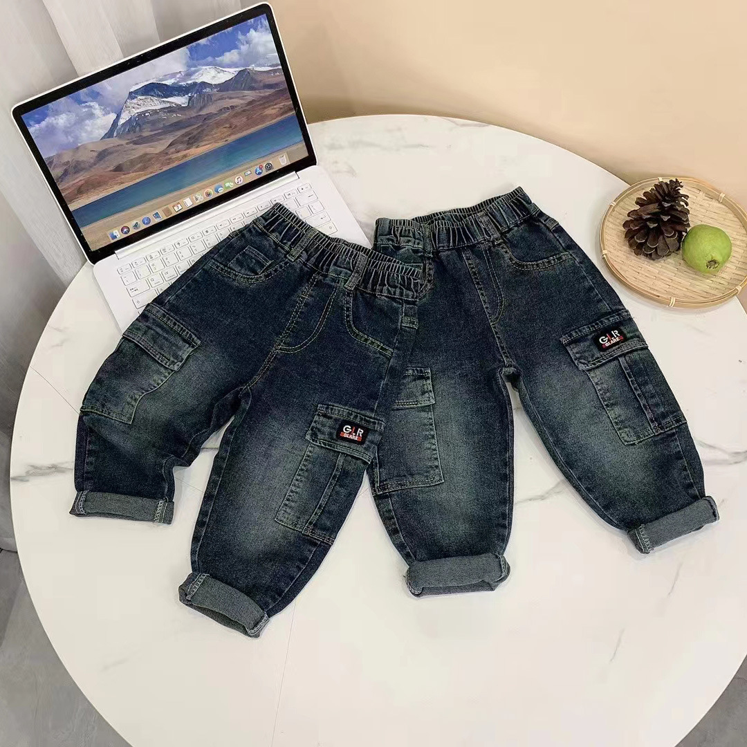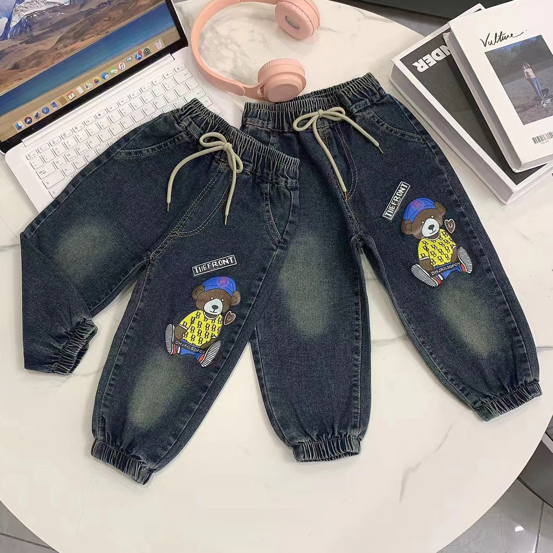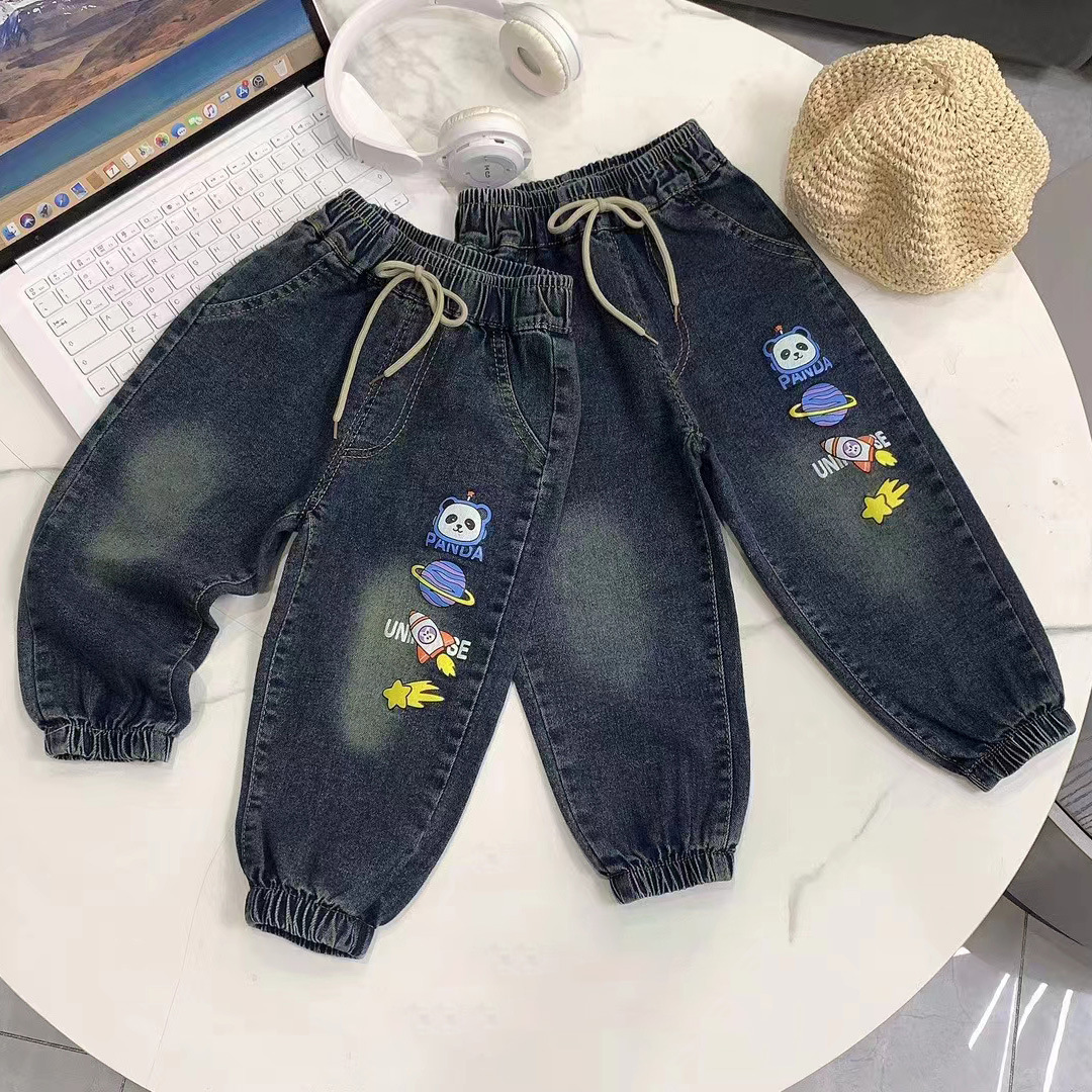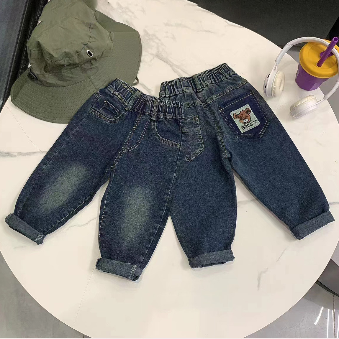 어린이 청바지 봄과 가을 소년 한국 스타일 바지 만화 스트레치 어린이와 소녀 가을을위한 세련된 바지스토어 가기