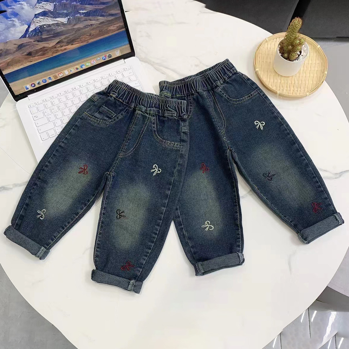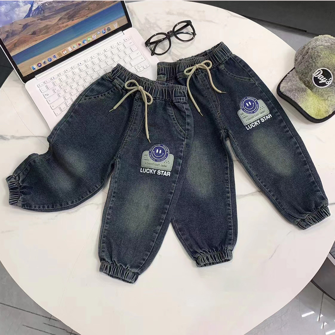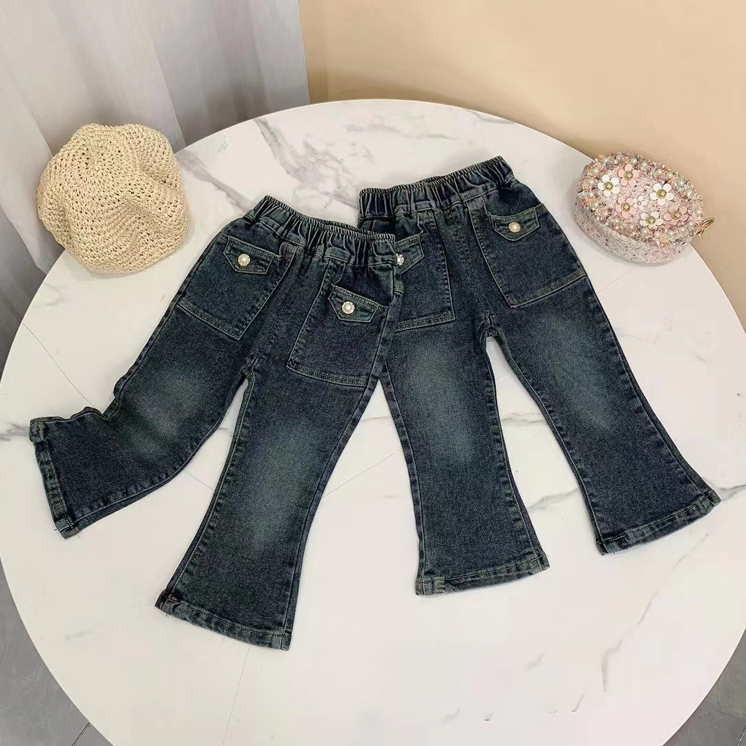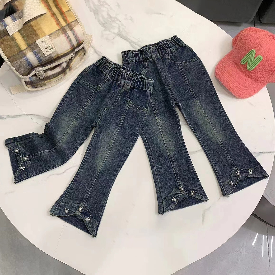 어린이 청바지 봄과 가을 소년 한국 스타일 바지 만화 스트레치 어린이와 소녀 가을을위한 세련된 바지스토어 가기