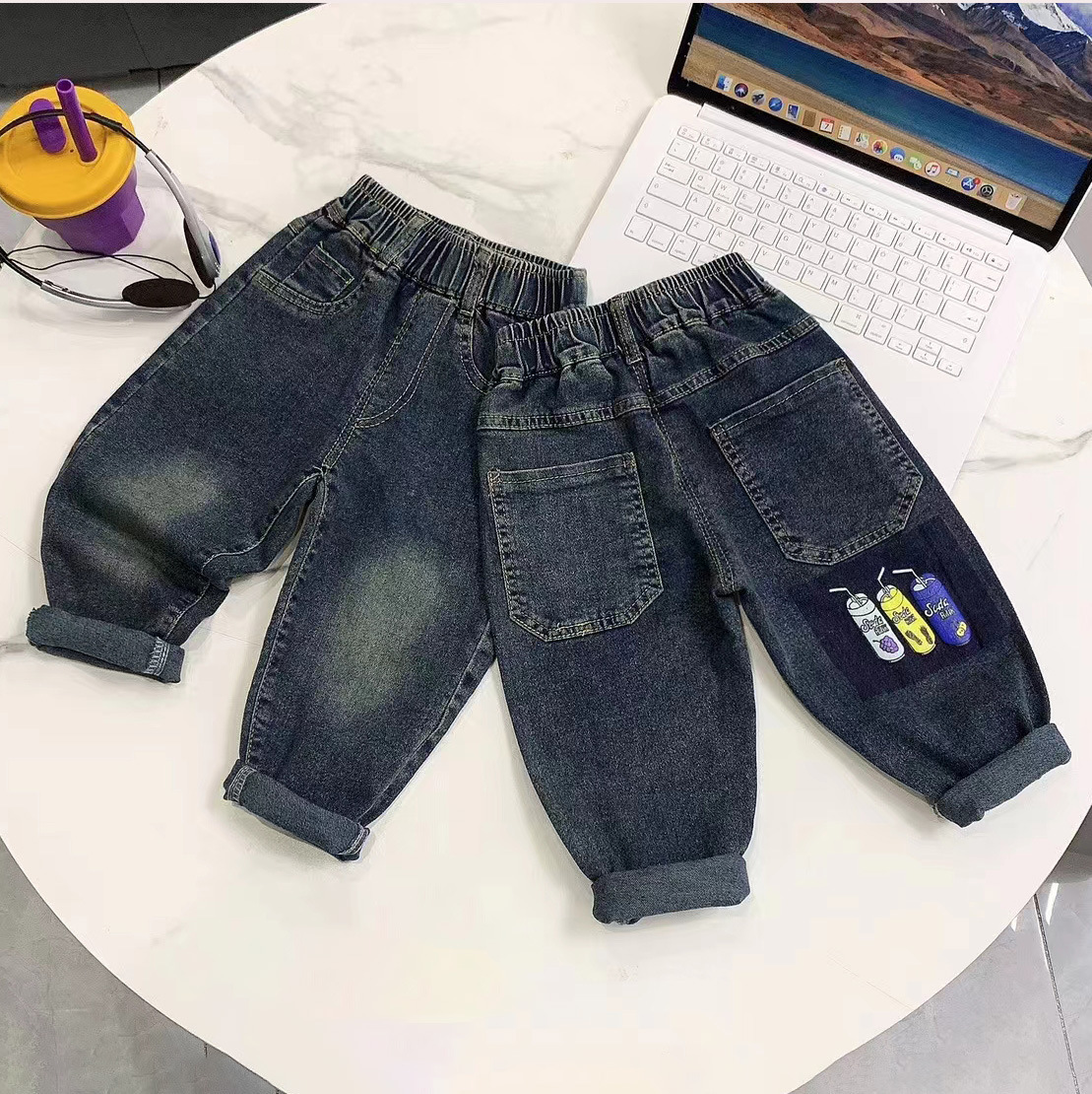 어린이 청바지 봄과 가을 소년 한국 스타일 바지 만화 스트레치 어린이와 소녀 가을을위한 세련된 바지