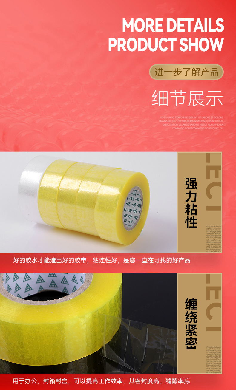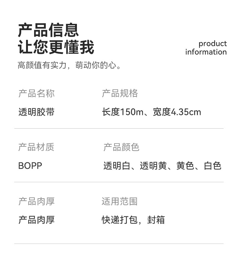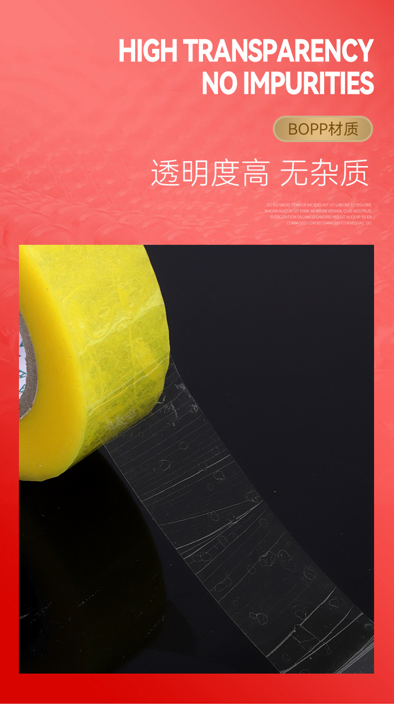 • bopp 밀봉 및 포장 테이프, 투명 노란색 4.4 너비 * 1.8 두께(84 롤/상자), 상자 전체에 밀봉 장치가 함께 제공됩니다.