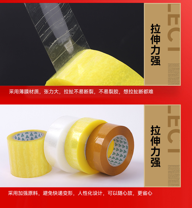 • bopp 밀봉 및 포장 테이프, 투명 노란색 4.0 너비 및 두께 3.2(42롤/상자), 상자 전체에 밀봉 장치가 함께 제공됩니다.