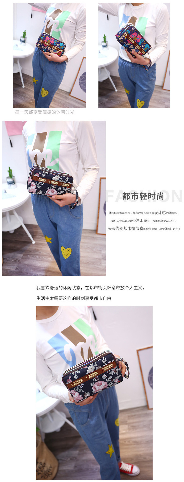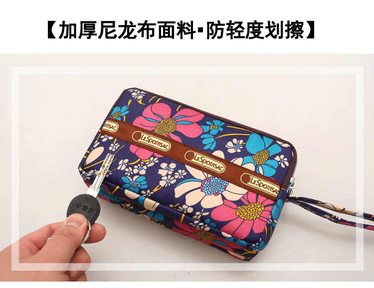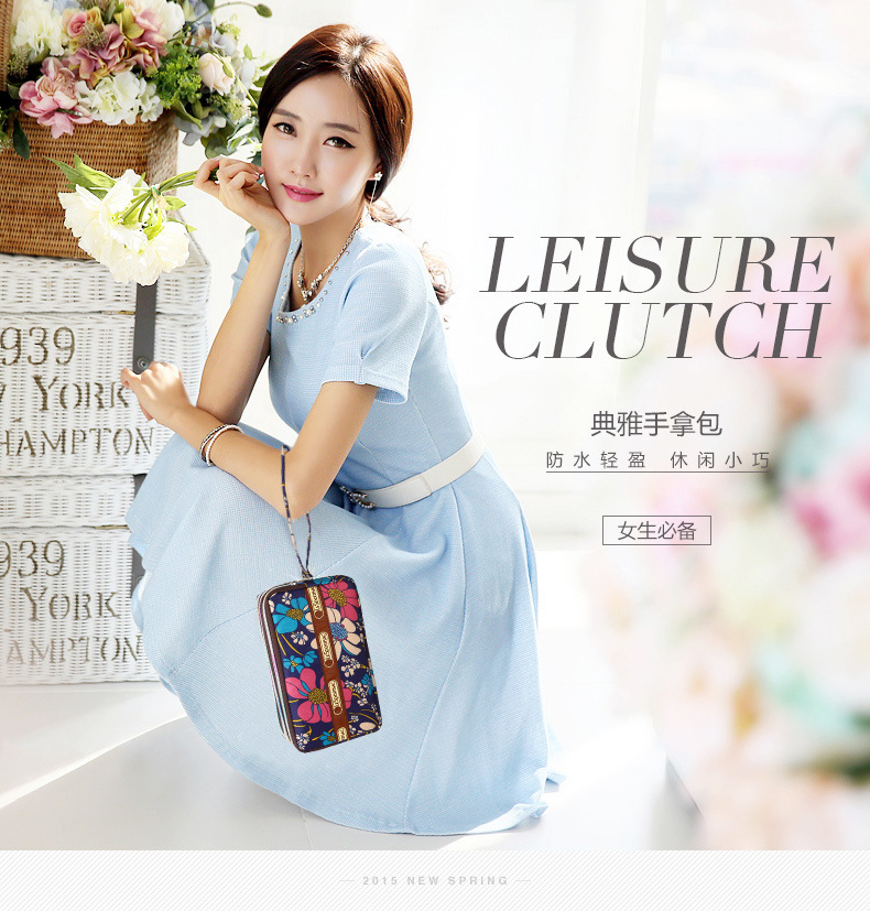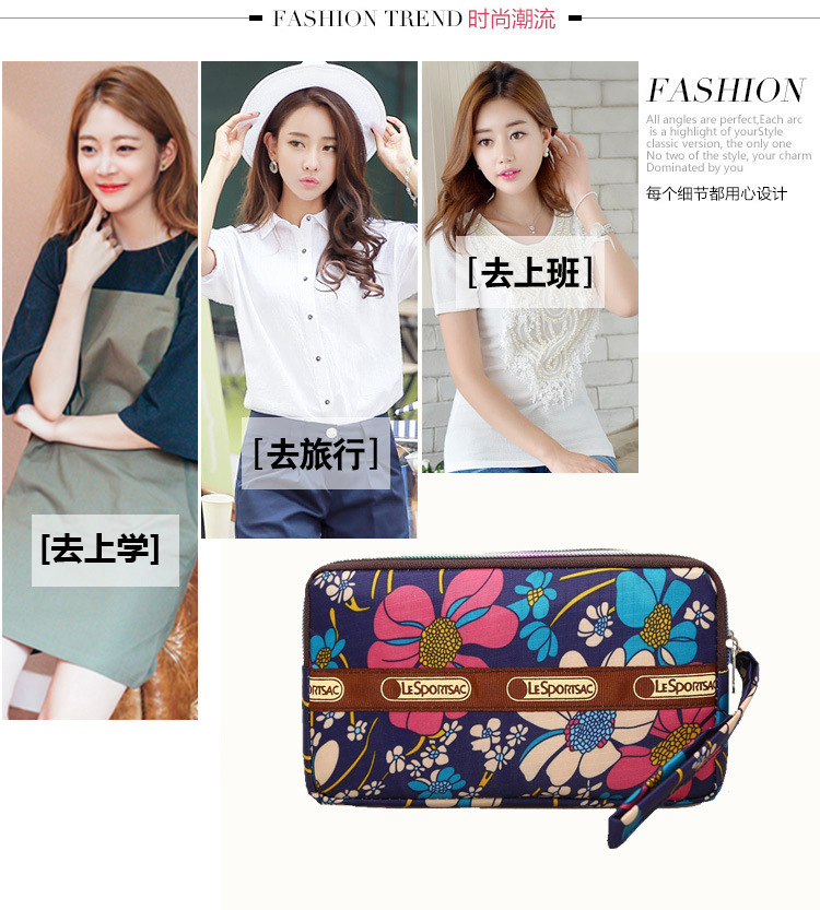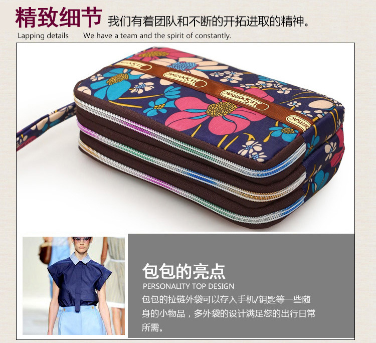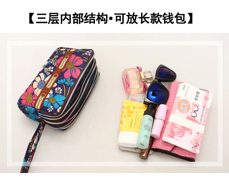 휴대 전화 가방 직물 인쇄 3 지퍼 긴 손목 동전 지갑 대용량 손을 들고 음식 구매 키 가방 클러치 백